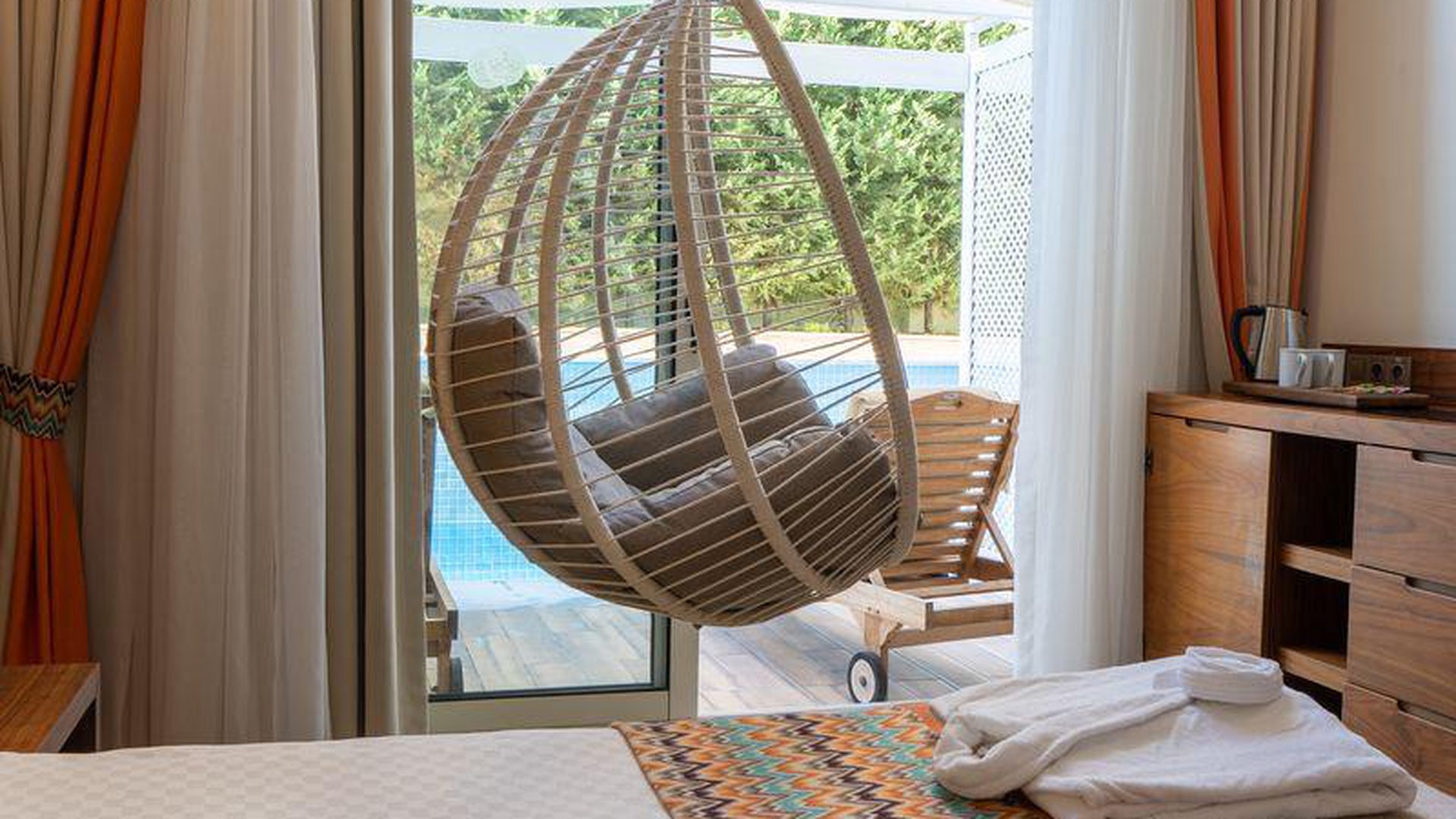 Swim Up Room tipo numeriai (tiesioginis išėjimas prie baseino, maks. 2 asm., 28 m2).