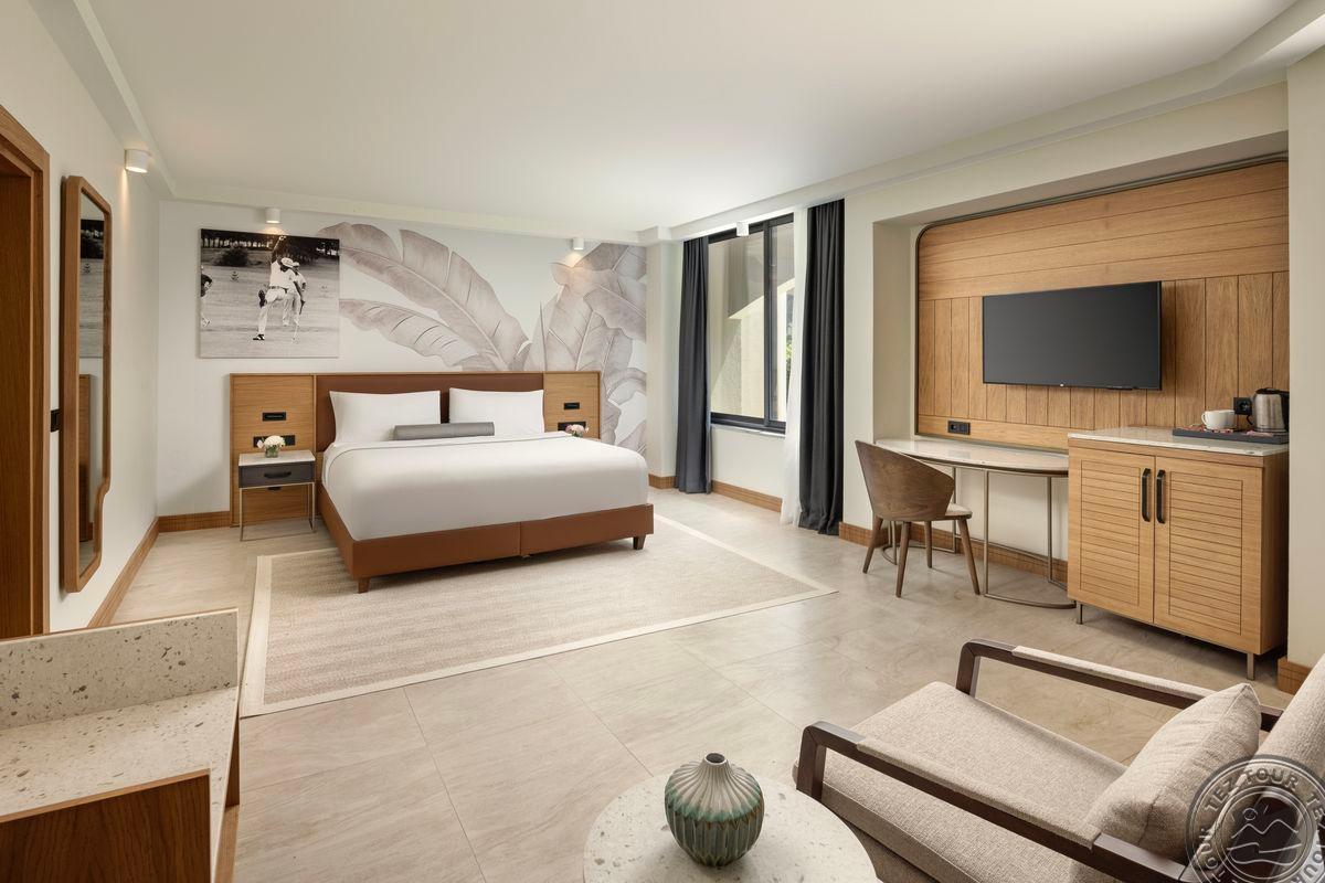 Standard Junior Suite Garden View tipo numeriai (pagrindiniame pastate, su vaizdu į golfo laukus arba sodą, dvigulė lova arba 2 viengulės lovos, maks. 2+2 asm. arba 3 asm., 47 kv.m);