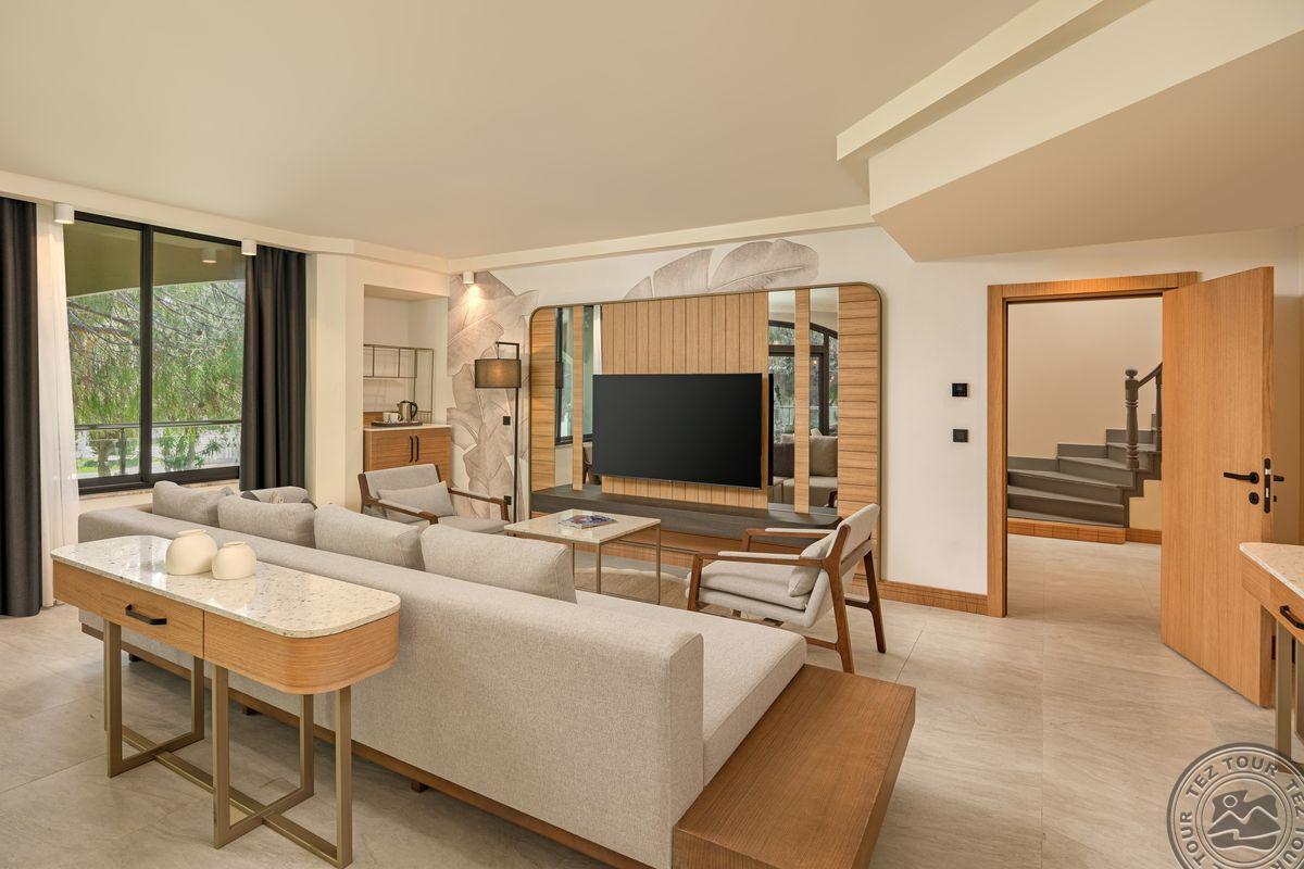 23 Bohemia Duplex Suite tipo numeriai (su vaizdu į baseiną, dviaukštis numeris, svetainė ir miegamasis, dvigulė lova, tiesioginis išėjimas į bendrąjį baseiną, privilegijos, maks. 2+2 asm., 140 kv.m);