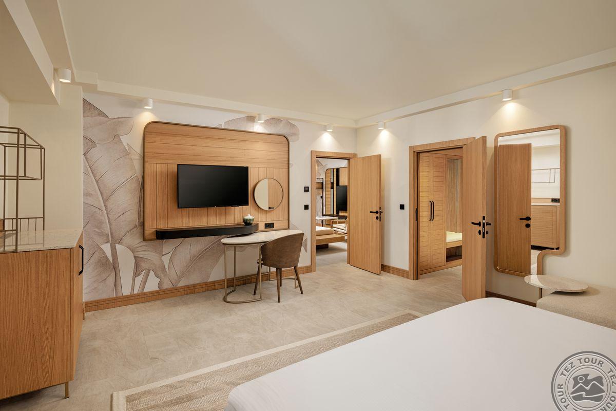 Superior Family tipo numeriai (vilose, su vaizdu į sodą arba baseiną, 2 miegamieji atskirti durimis, 1 vonios kambarysm maks. 3+1 asm.+kūdikis, 60 kv.m);