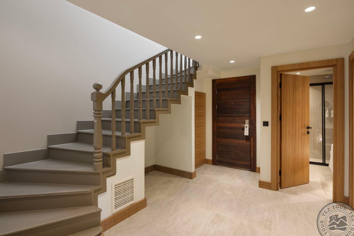 Lale Suite tipo numeriai (su vaizdu į sodą, dviejų aukštų numeris, 2 miegamieji, dvigulė ir 2 viengulės lovos, 2 vonios kambariai, maks.4+1 asm., 80 kv.m);