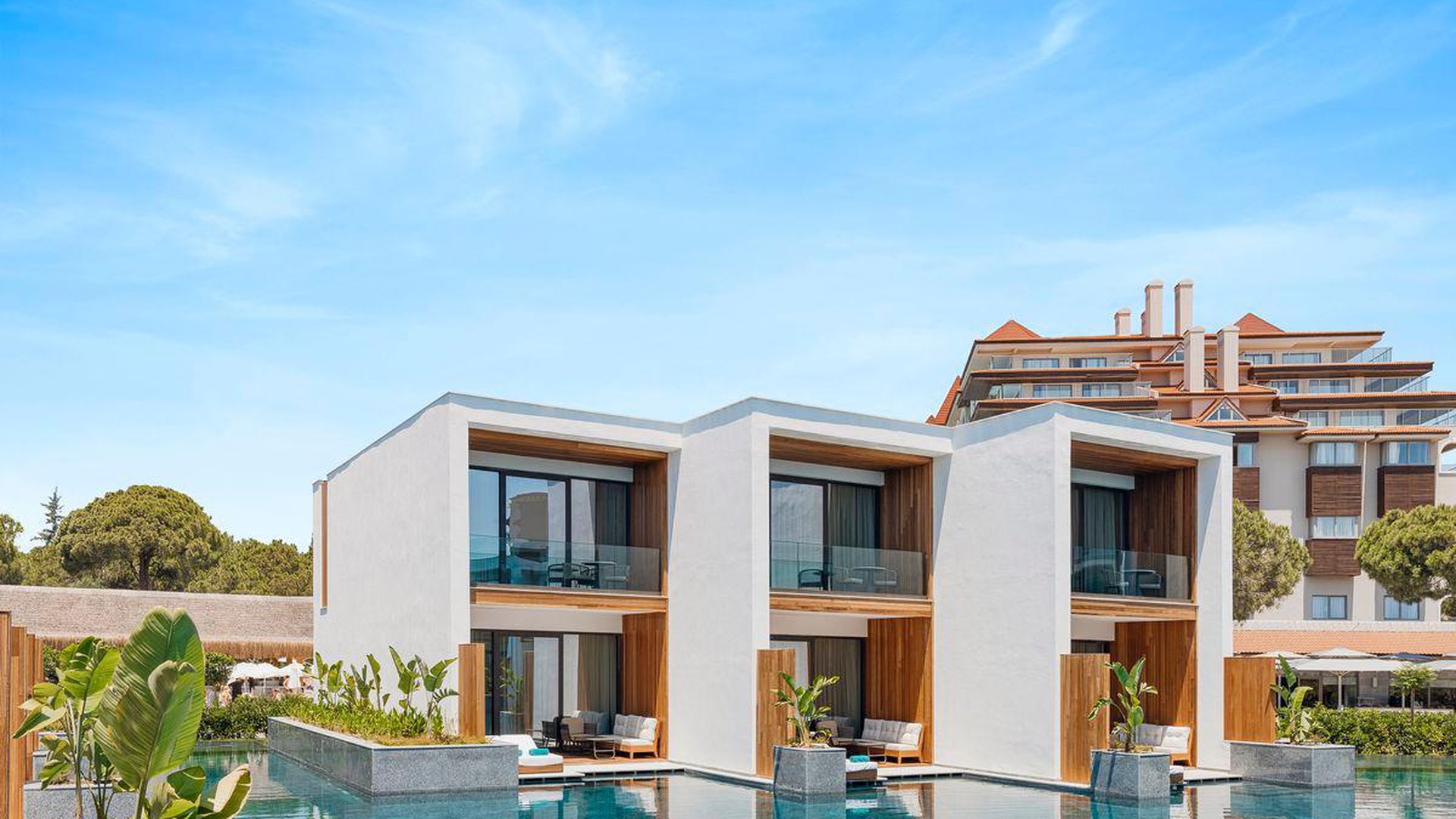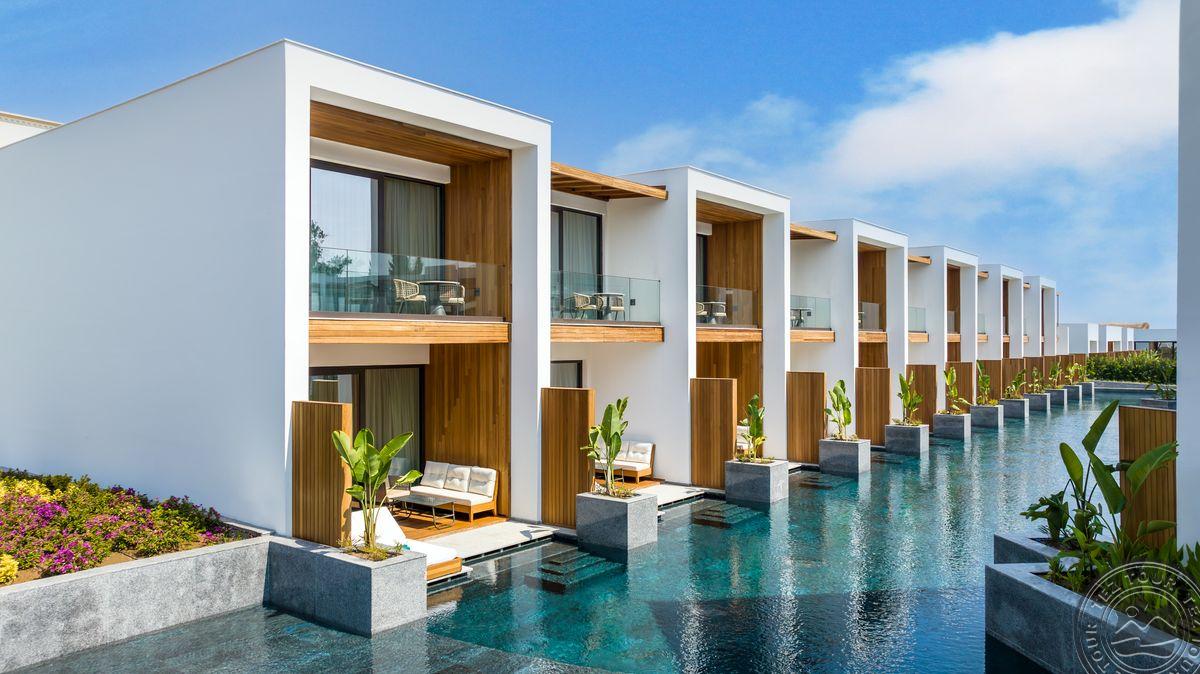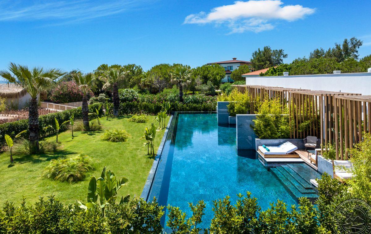 3 Bohemia Villa tipo numeriai (su vaizdu į baseiną ir jūrą, svetainė, 3 miegamieji, dvigulės lovos, tiesioginis išėjimas į bendrąjį baseiną, privilegijos, maks. 6 asm., 200 kv.m);