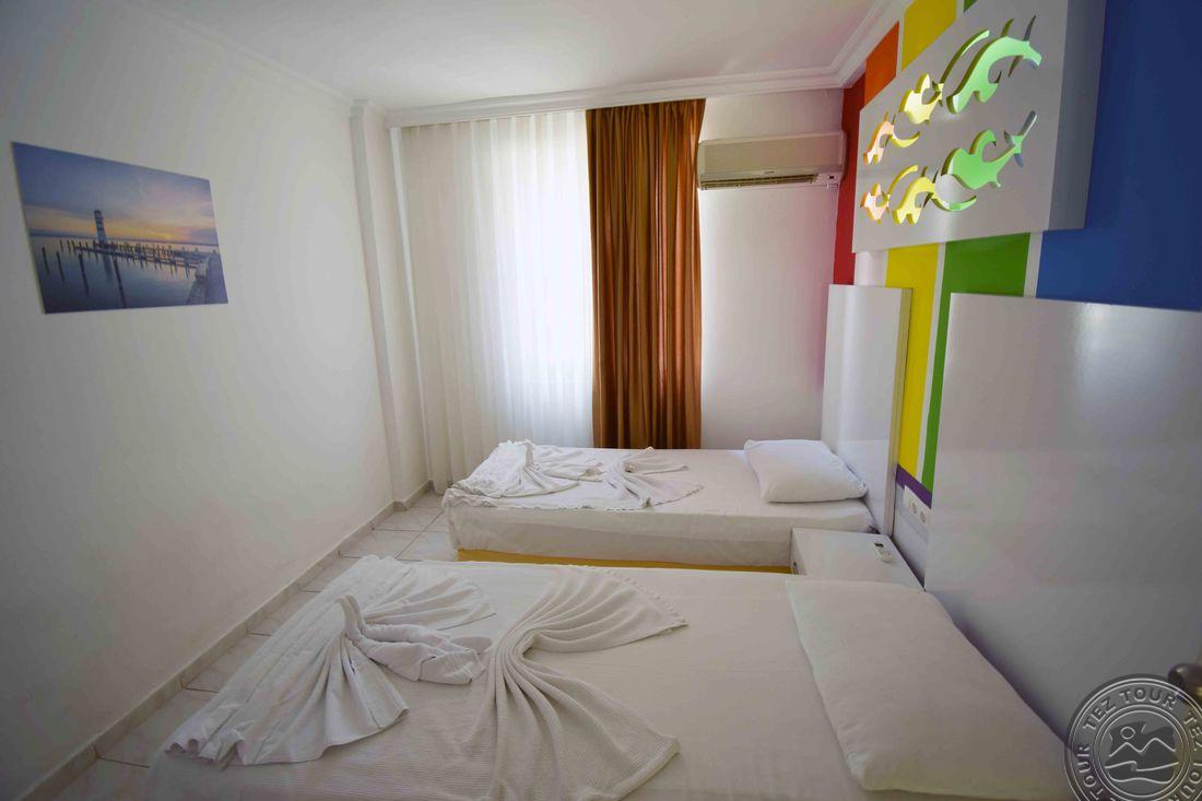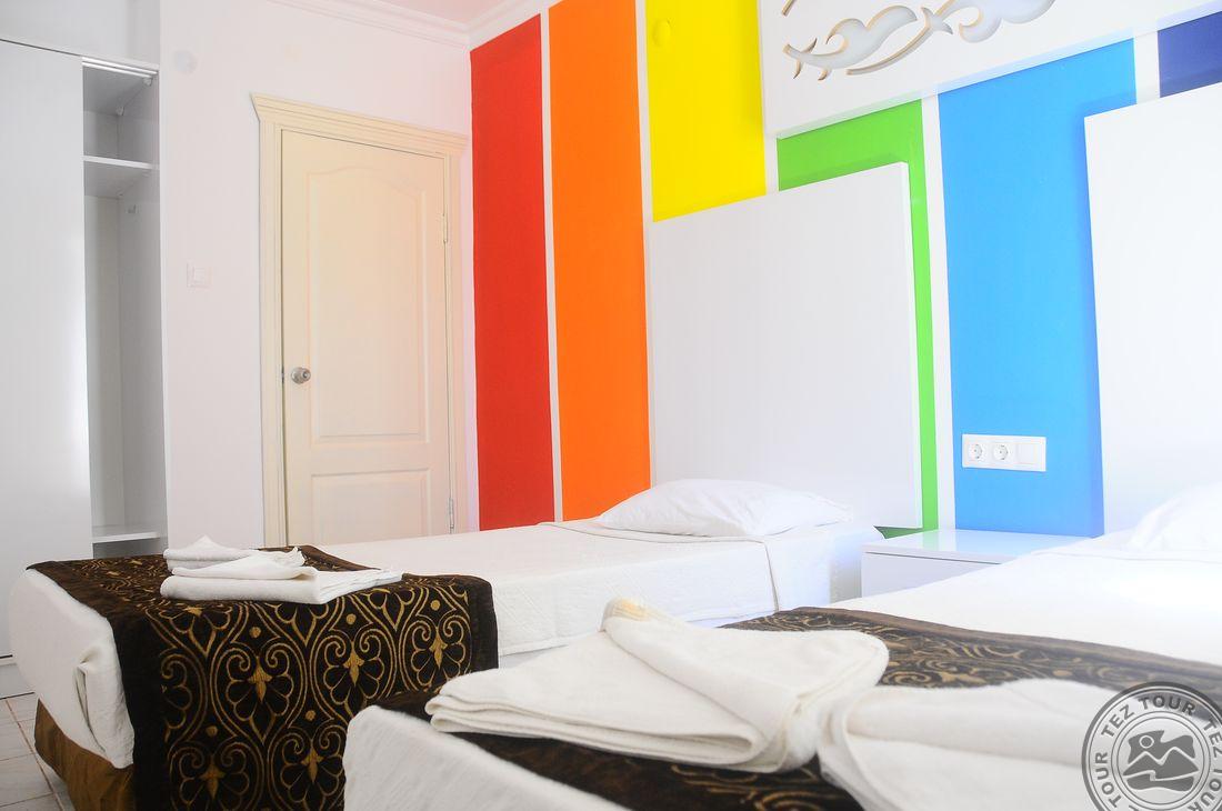 26 family rooms tipo numeriai (2 miegamieji atskirti durimis, vonios kambarys, maks. 4 asm. + kūdikis, 48 m2).