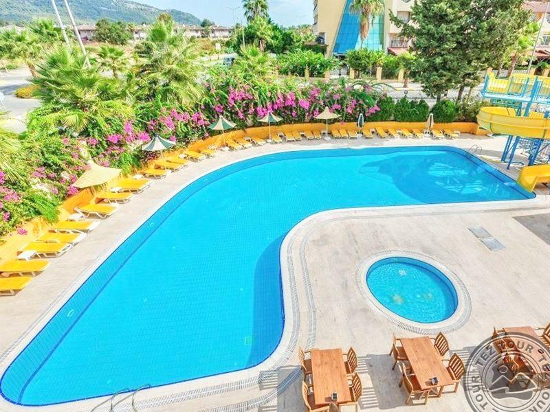 Su vyru geguzes 13-21d gyvenome siame viesbutyje. Gerai tik tas,jog pasidareme sau aktyvia savaite, nes viesbutis prabanga tikrai neviliojo.Viesbutis prie gatves,kuria istisai vazineja autobusai, taigi triuksmo pakako. Daznas mini priesais viesbuti esanciuose pavilionuose Jacobs tour.Rusiskai kalbantis, 10m kelionemis uzsiimantis vyrukas keliones siule perpus pigiau nei siule mums Tez tour, taciau kokybe nenukentejo(gide ruse, autobusas su kondicionieriumi,saldytuve buvo gerimu).Muratas visada pavaisindavo arbata,karta uzkviesti i svecius vakare rukeme kaljana.Verta aplankyti: Pamukkale(siulau negaisti laiko uzvaziavimui i vynine ir tekstiles parduotuve-pirkeju buvo gal pora,o sugaisom apie 2val),daugiau laiko praleidziant maudynems mineraliniame vandenyje;Demre-Mira -Kekovo.Viesbutyje siule hamam uz 25dol, o Jacobs tour dirbantis Muratas mus nuveze i salia esanti uz 15dol, beto aplinka nepalyginamai grazesne+profesionalus masazas.Plaukeme didelia Mega Star jachta ,kurios kapitonas Ali-neapsakomi pakranciu vaizdai,sou jachtoje,Feselis.Viesbucio animatore keleta vakaru siule nuvezti i putu diskoteka,ar "Turkiska nakti", o viesbutyje skambejo pagrinde 80-tuju muzika.Apie alkoholinius gerimus atsiliepimuose tikra tiesa-neapsvaigsit.Lygtai ir viskas iskaiciuota, bet kai prieini kad ir 5 (po puse pilamo) vyno bokalo, tai ziuri kaip bulius ir pradedi galvot,kad jau is savo kisenes vargsas vaisina.Personalas nemalonus, ryte net nepasisveikin,kambari irgi tvarke aplaidziai(pakeisdavo ranksluoscius ir pamozodavo grindis).Maistas mus tenkino:didelis pasirinkimas darzoviu ir ju misiniu,suriu,garnyru,buvo ir zuvies,kepsniu,bet taip-vyrauja vistiena(uztai nepriaugau nei kiek)Papludymys tikrai netoli, net malonu pasivaikscioti, geguzes men viskas zydi, kvepia,pilni sodai apelsinu.Turekite spec batelius maudymuisi,nes nuo akmenuoto kranto ir dugno paskausta pedas.Ranksluosciu i papludymi issinesti negalima.Treciadieni i Čamjuva atvyksta turgus,ten nusipirkite lauktuves ir prieskoniu mesai-nuostabus prieskoniu kvapas,neapsigaukite su šafranu.Zodziu viesbucio minusus kompensavome pasivaiksciojimais po miesteli ir kelionemis. Sekmes