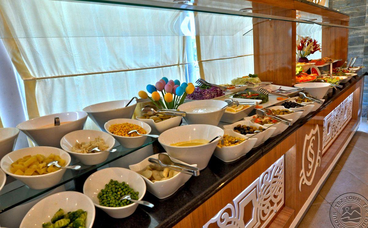 Kambariai valomi kiekvieną dieną. Patiekalai tikrai skanūs, kiekvienas gali rinktis iš salotų, mėsos ar saldumynų. Baseinai tiek suaugusiems, tiek vaikams, paplūdimys ir sporto klubas visada švarūs ir be šiukšlių. Taip pat yra uždaras baseinas, hamamas, sauna, masažai ir kirpykla. Personalas labai dėmesingas ir paslaugus, net ir pats savininkas. Labai rekomenduoju viešbutį ir laukiu kito apsilankymo.