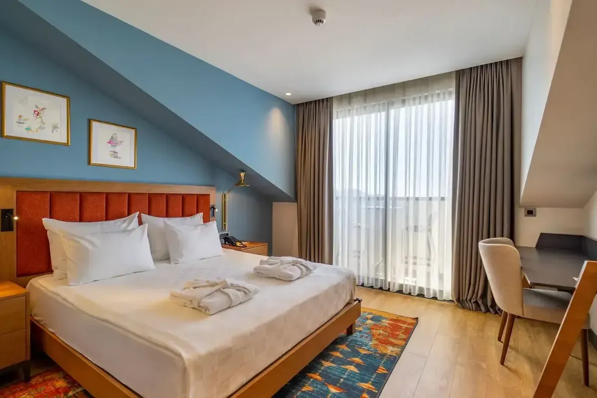• 21 Deluxe kambariai su vaizdu į stogą tipo kambariai  (maks. 3 asm., 25-30 kv.m. )