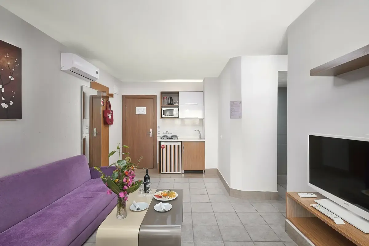 Sunpark Garden Hotel – gyvybingas ir šeimoms pritaikytas viešbutis Alanijos centre, siūlantis linksmas ir aktyvias atostogas. Čia svečių laukia du baseinai su čiuožyklomis, animacijos programos vaikams ir suaugusiesiems, žaidimų aikštelė bei SPA zona su hamamu ir sauna. Apartamentai erdvūs, su virtuvėle ir balkonu – patogu ilgiau trunkančiam poilsiui. Nors paplūdimys yra apie 1,5 km atstumu, viešbutis siūlo pervežimo paslaugą. Tai puikus pasirinkimas tiems, kurie mėgsta aktyvų poilsį, pramogas ir gyvą atmosferą atostogų metu.