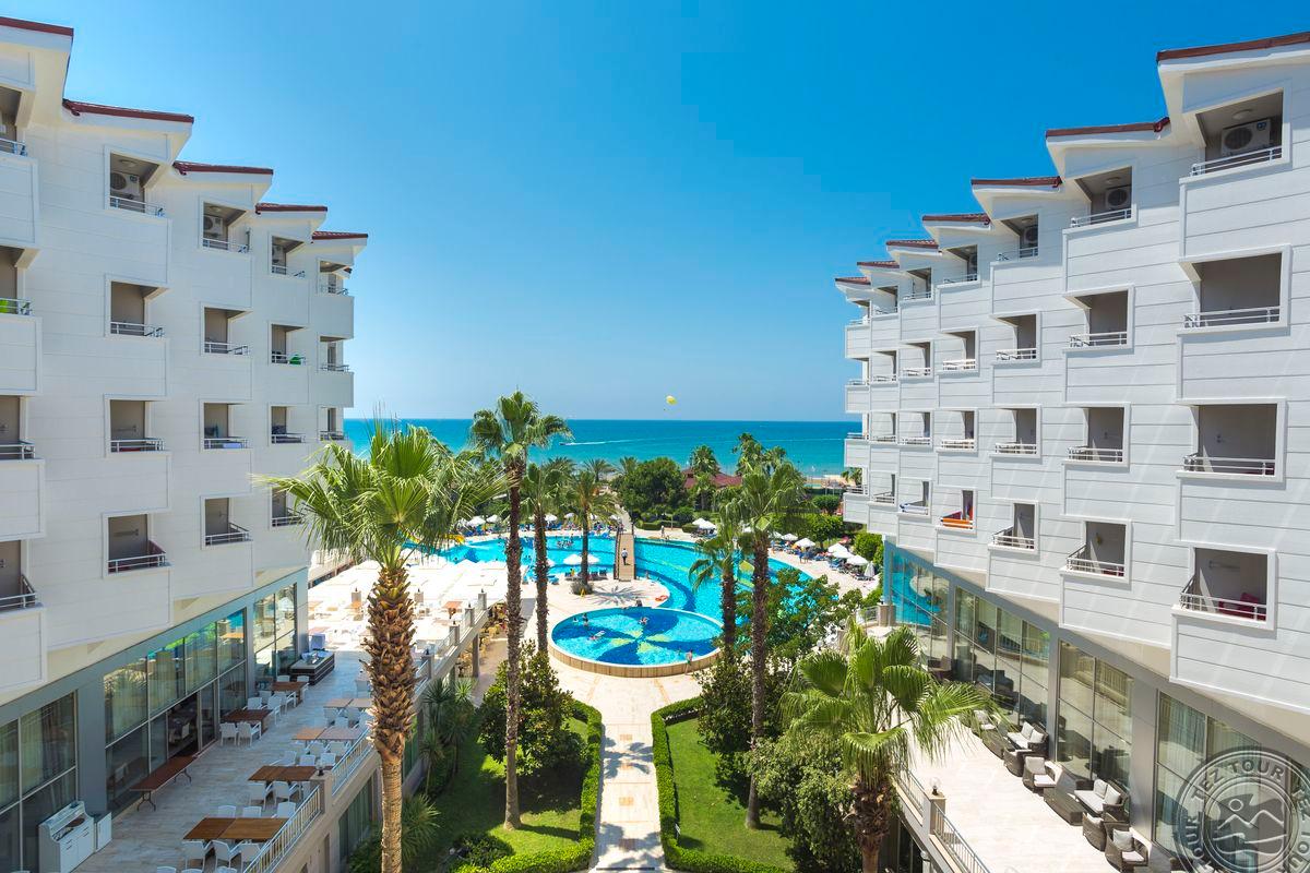 Apie 65 km iki Antalijos oro uosto, apie 4 km iki Sidės miesto, ant jūros kranto.