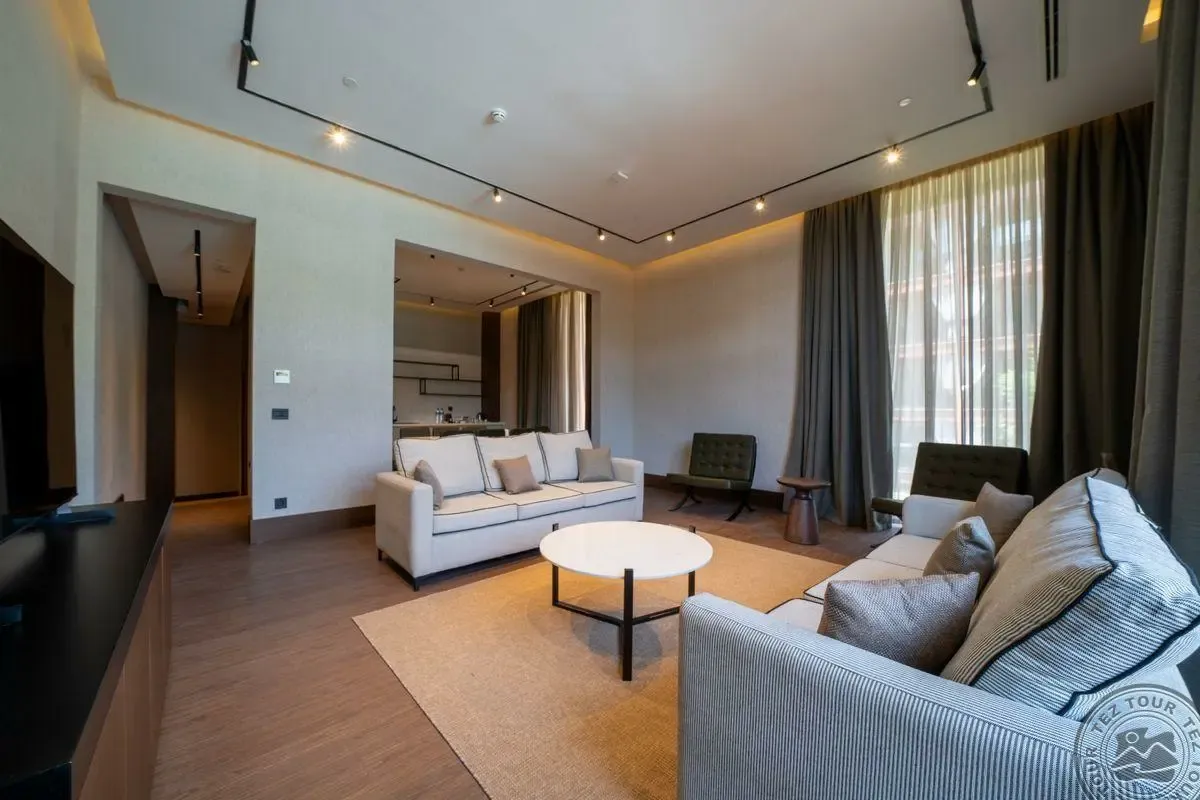 Loft Premium Deluxe with Private Pool tipo numeris (Land View, svetainė, atvira virtuvė, 3 miegamieji, dvigulė arba 2 viengulės lovos, 3 vonios kambariai, baseinas, maks. 4+2 asm., 130 kv.m).