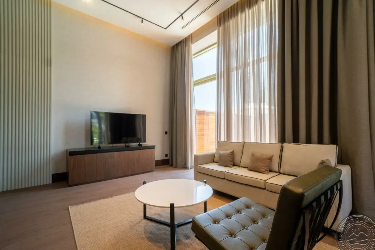 Main Building Junior Suite Land / Sea View tipo numeris (svetainė ir miegamasis, dvigulė arba 2 viengulės lovos, maks. 3+2 asm., 45 kv.m).