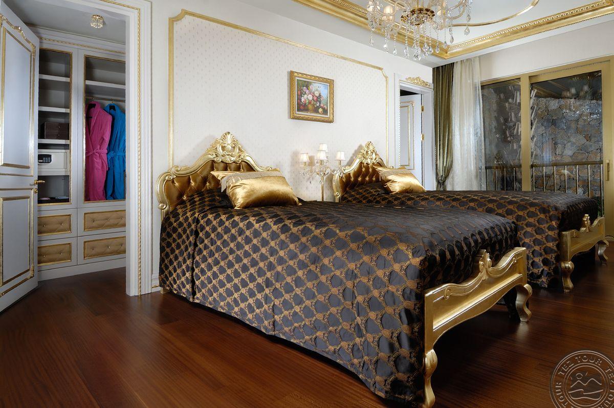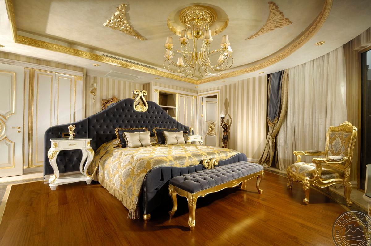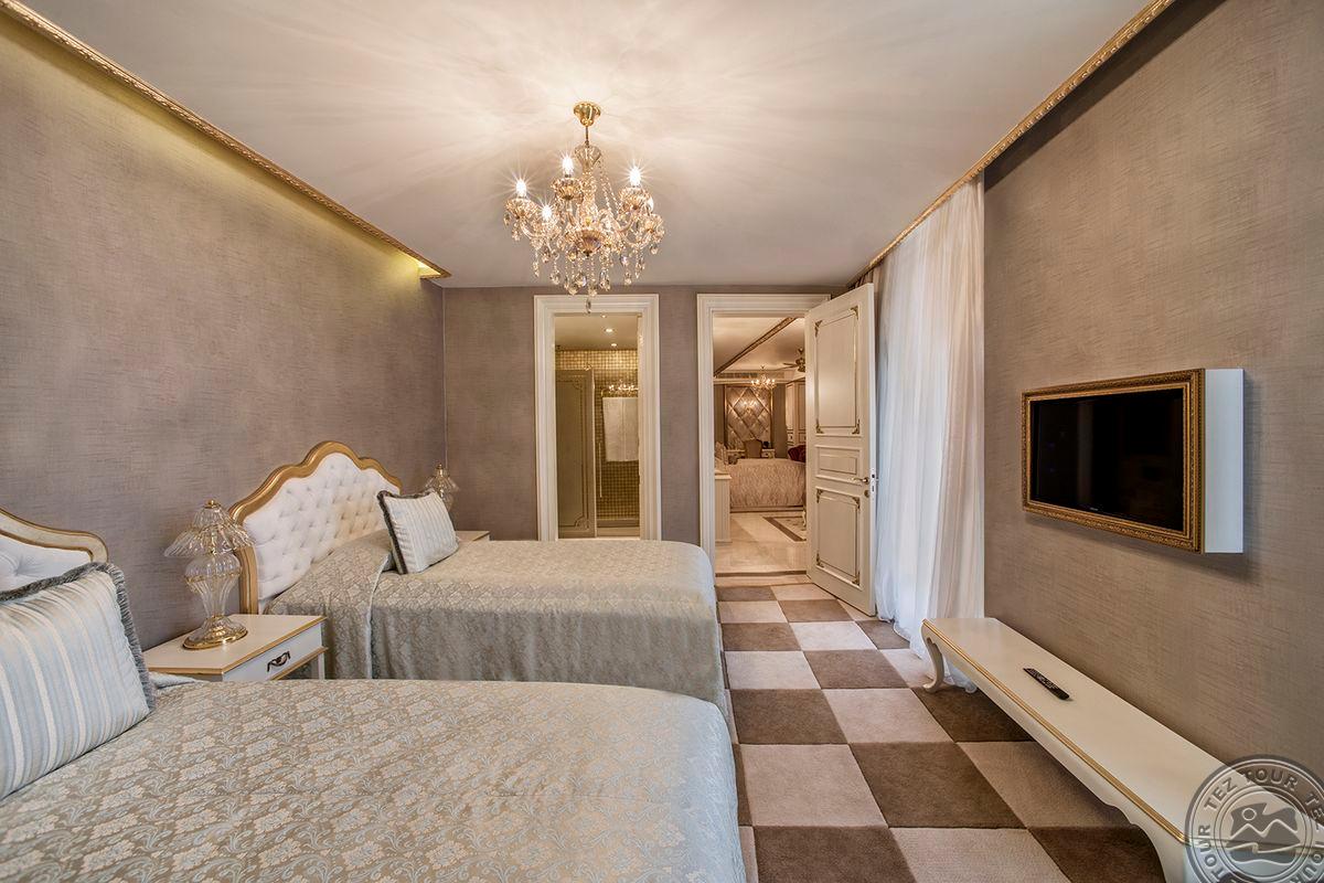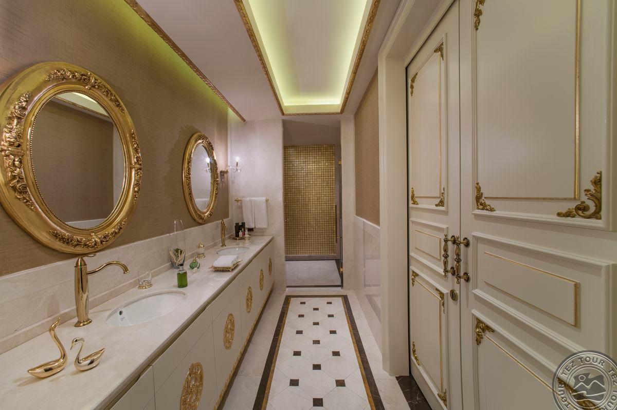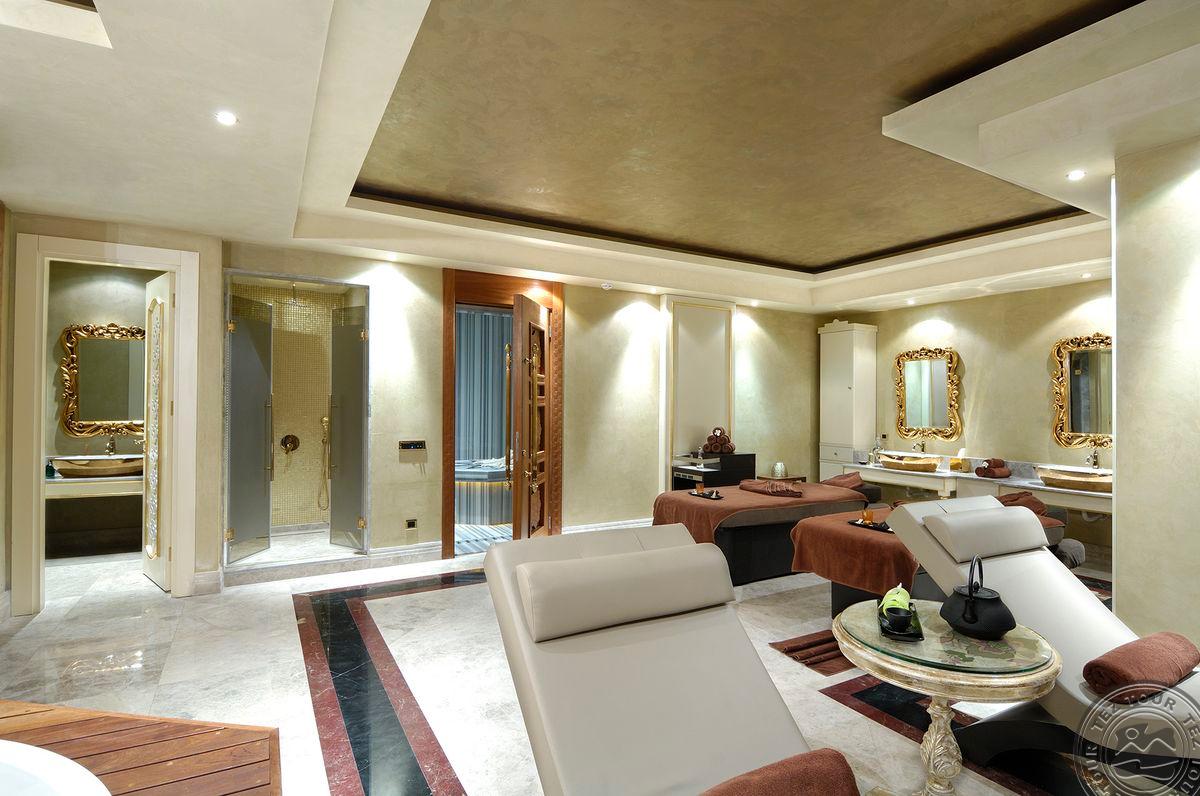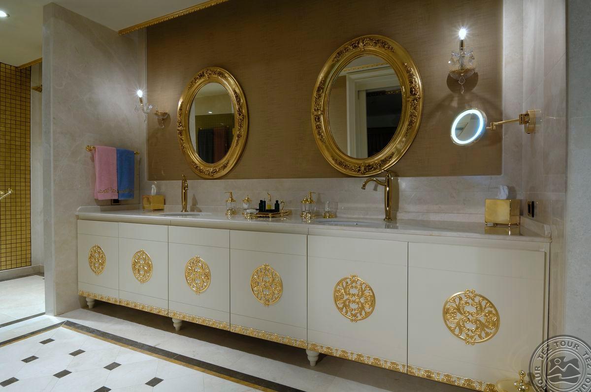 5 Royal Grand Villa tipo vilos (2-jų aukštų vila su liftu, su vaizdu į jūrą; 1-me aukšte: svetainė su įrengta virtuve ir valgomojo zona, miegamasis su dvigule lova, uždaras baseinas + sauna ir hamamas, bėgimo takelis ir dviračio treniruoklis, privatus baseinas, terasa; 2-me aukšte: 2 miegamieji su viengulėmis lovomis, 1 miegamasis su dvigule lova, 1 miegamasis su apvalia dvigule lova ir sūkurine vonia; yra skalbimo masina, maks. 10 asm., 725 m2).