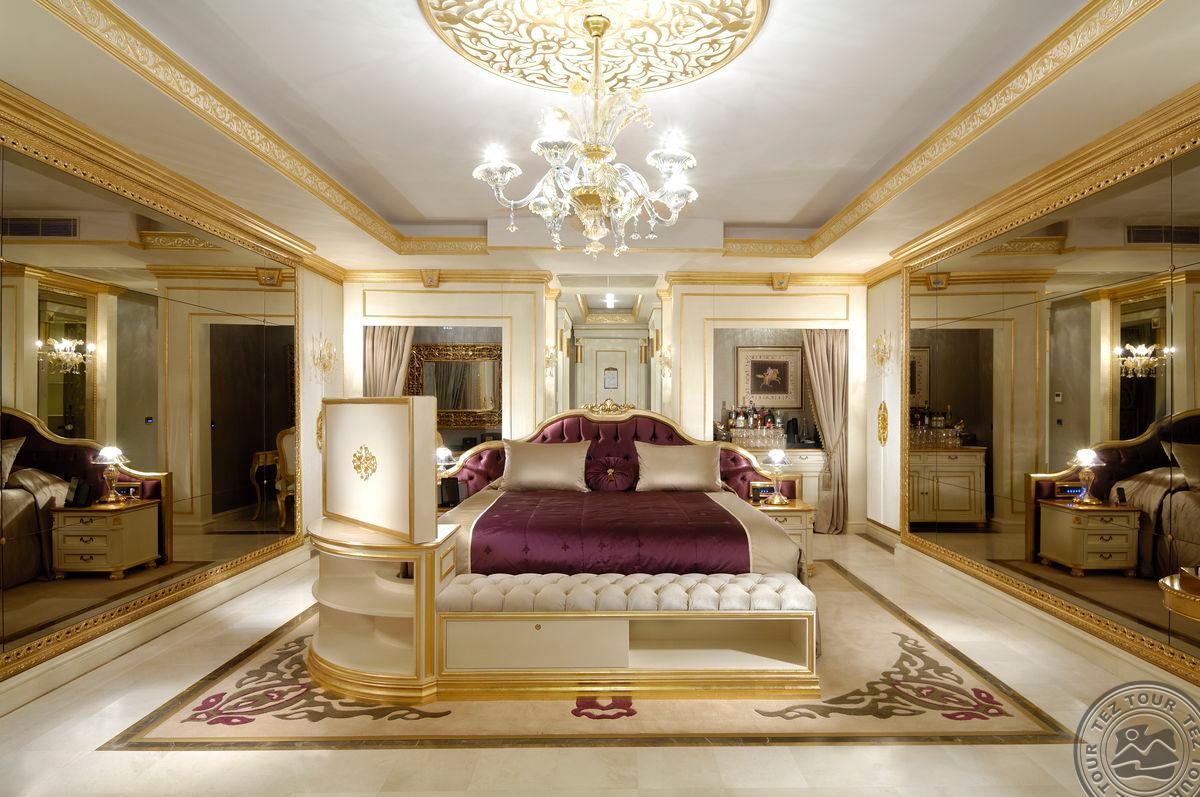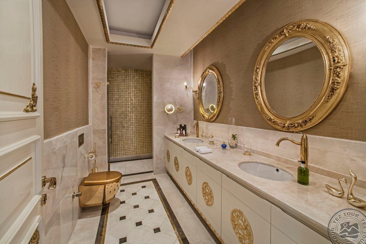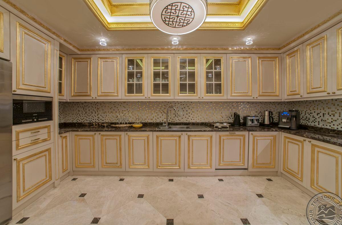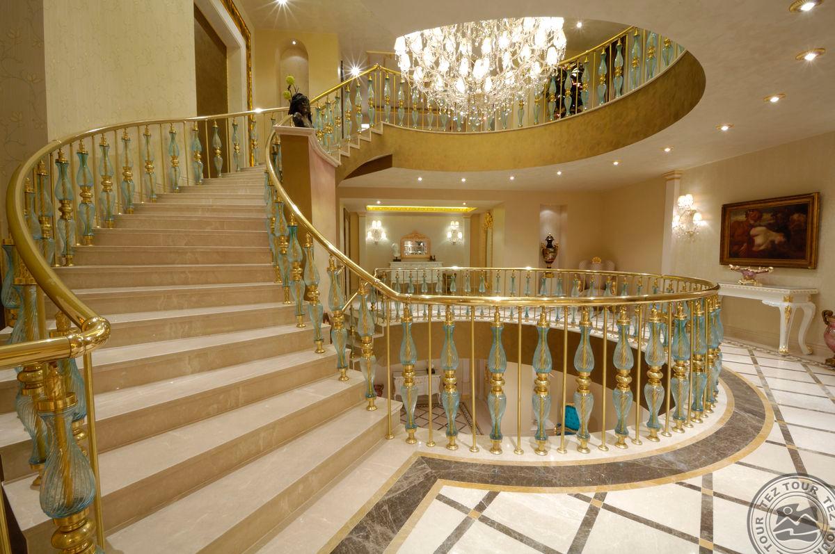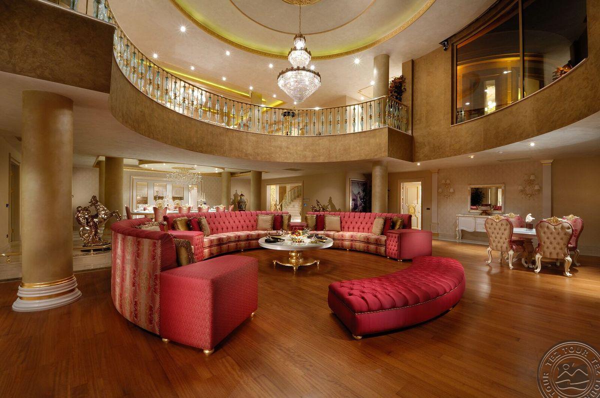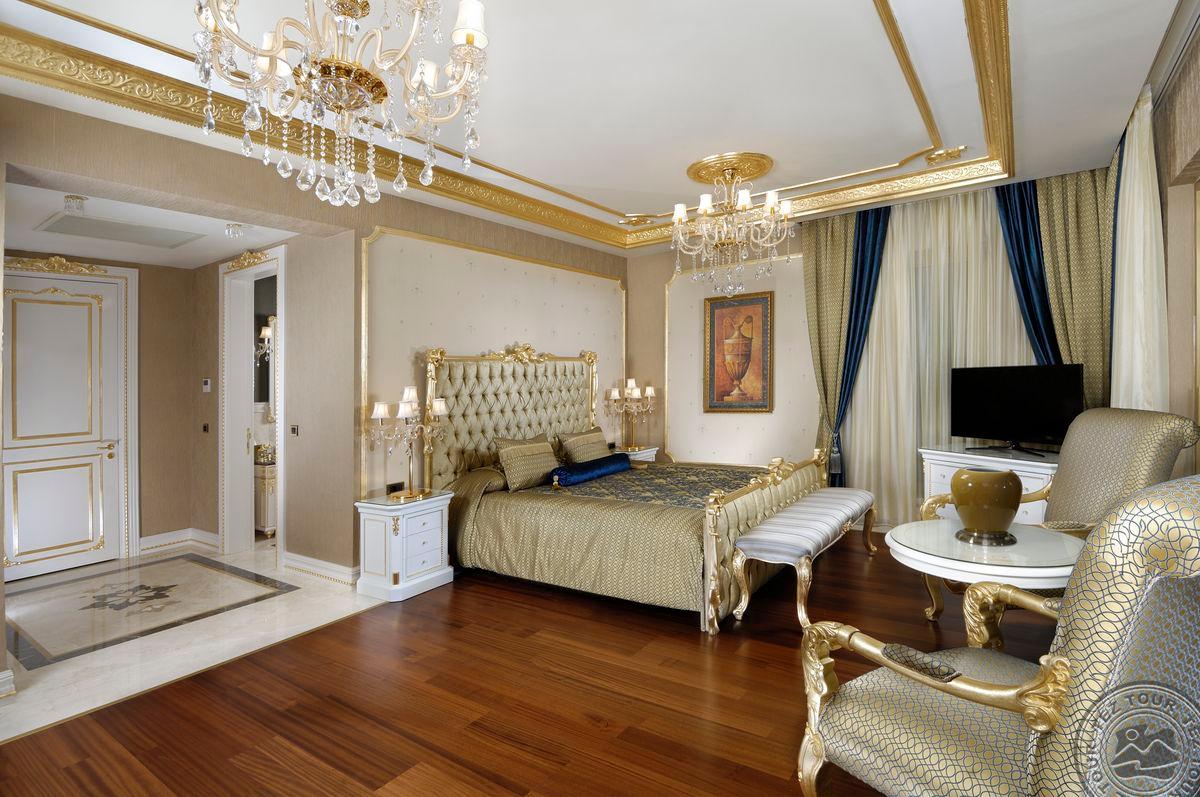 5 Royal Grand Villa tipo vilos (2-jų aukštų vila su liftu, su vaizdu į jūrą; 1-me aukšte: svetainė su įrengta virtuve ir valgomojo zona, miegamasis su dvigule lova, uždaras baseinas + sauna ir hamamas, bėgimo takelis ir dviračio treniruoklis, privatus baseinas, terasa; 2-me aukšte: 2 miegamieji su viengulėmis lovomis, 1 miegamasis su dvigule lova, 1 miegamasis su apvalia dvigule lova ir sūkurine vonia; yra skalbimo masina, maks. 10 asm., 725 m2).