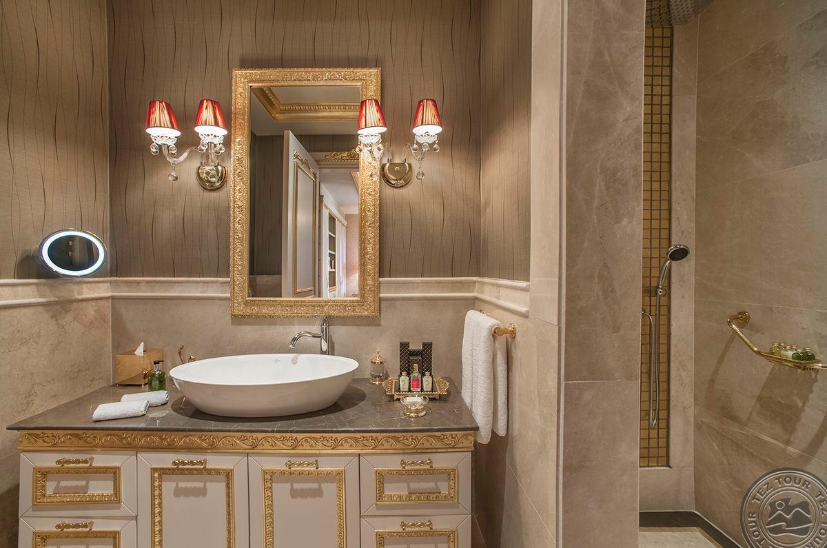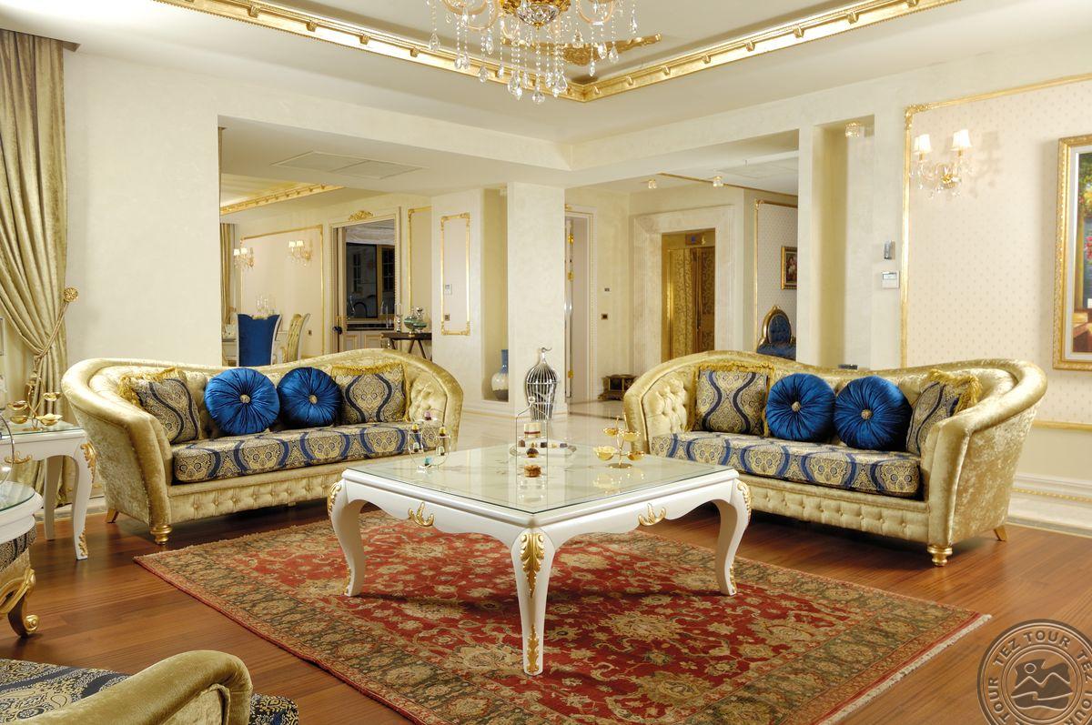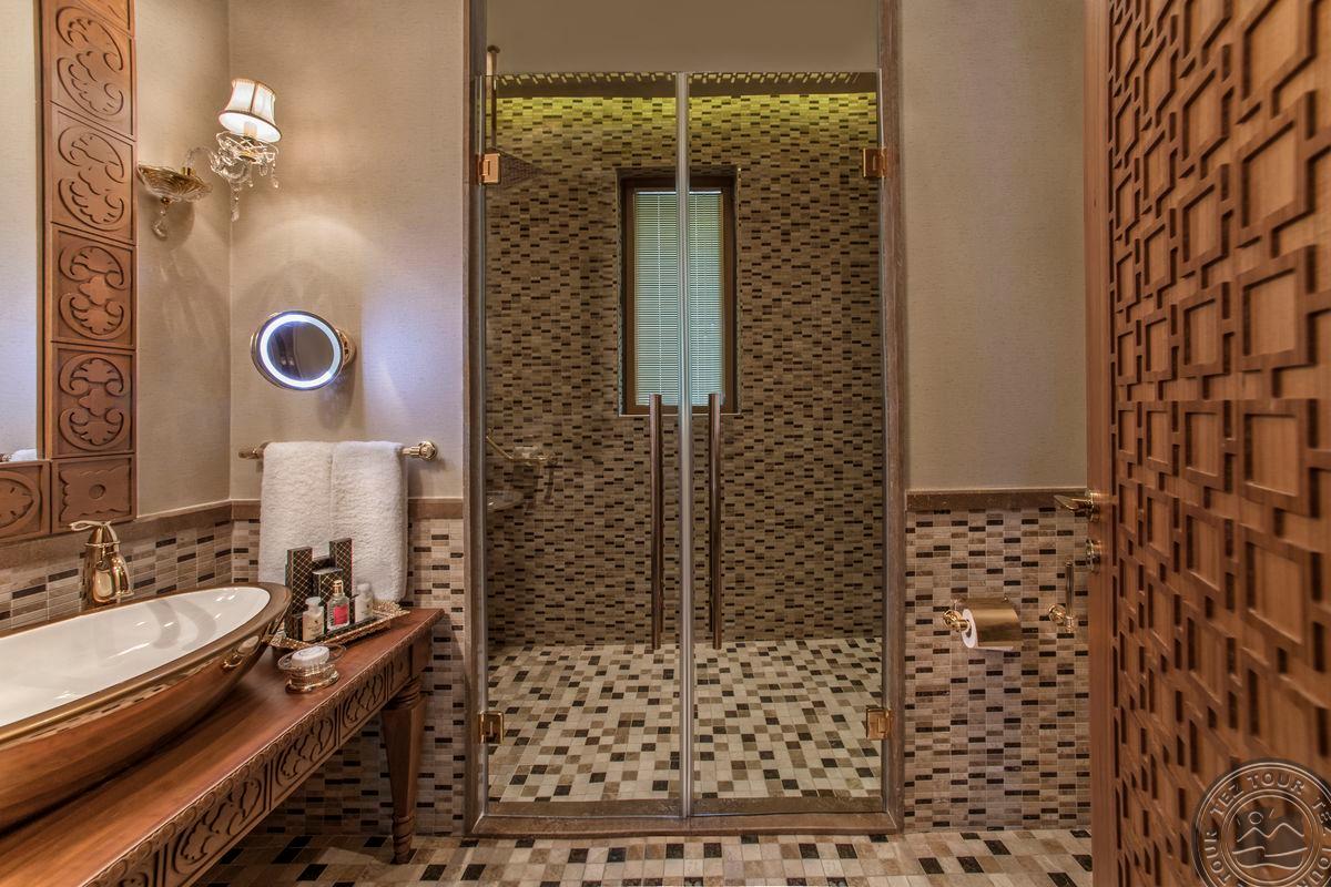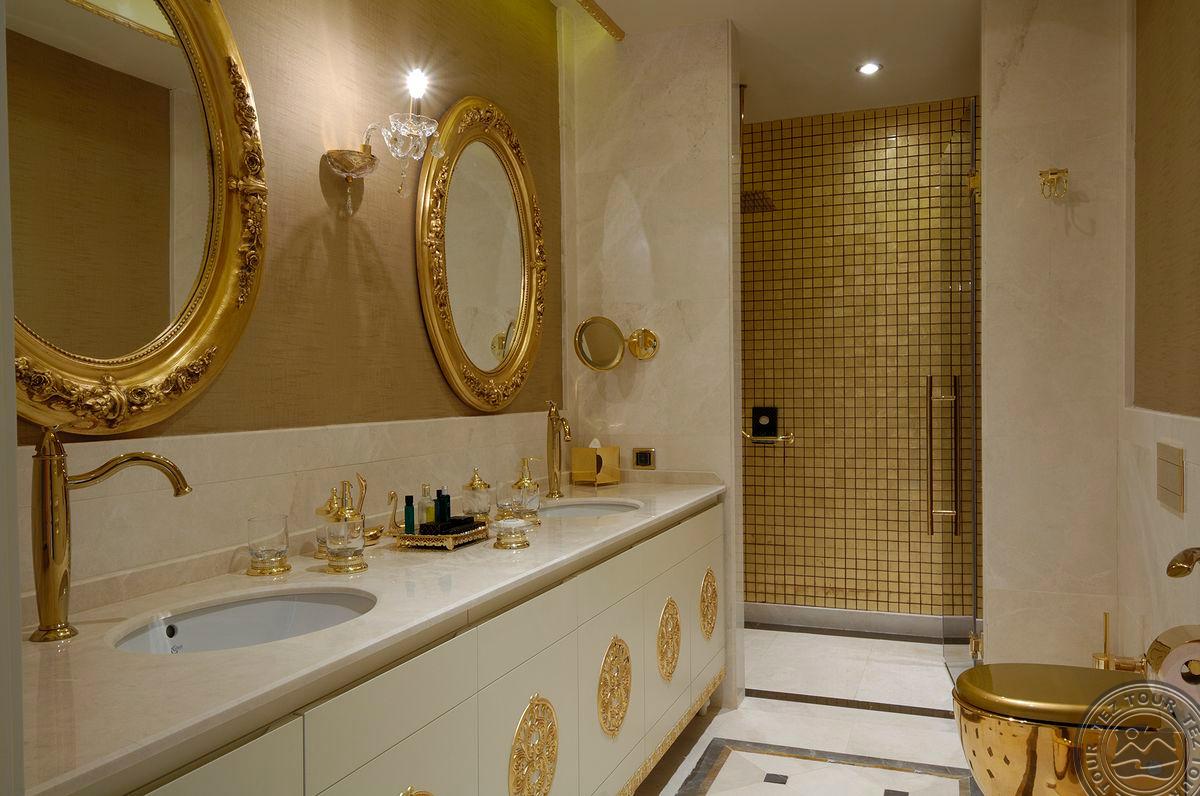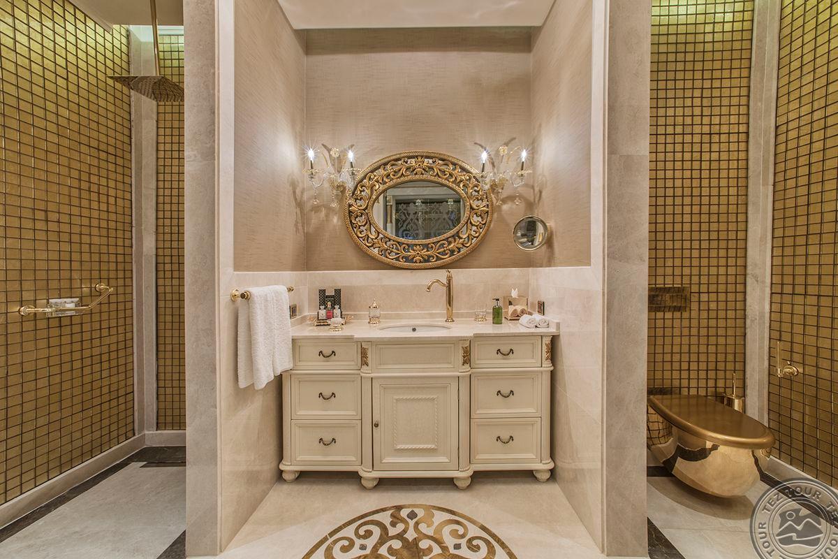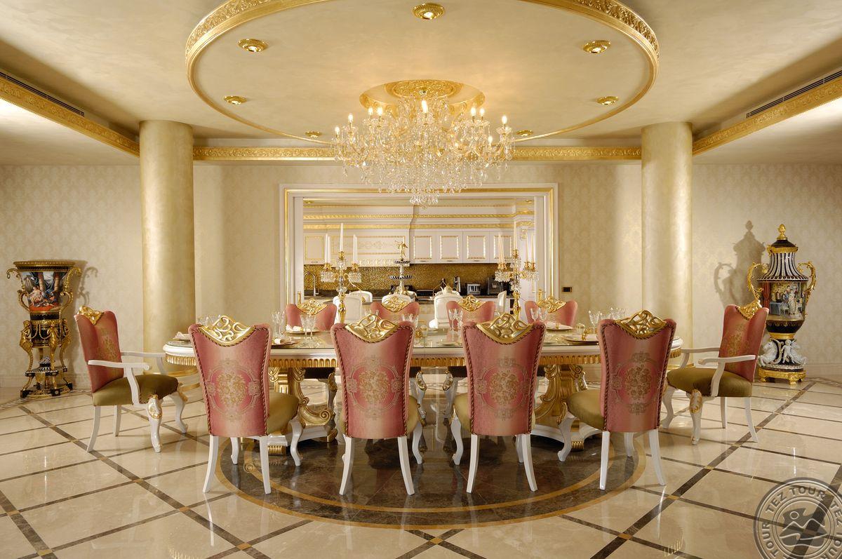 5 Royal Grand Villa tipo vilos (2-jų aukštų vila su liftu, su vaizdu į jūrą; 1-me aukšte: svetainė su įrengta virtuve ir valgomojo zona, miegamasis su dvigule lova, uždaras baseinas + sauna ir hamamas, bėgimo takelis ir dviračio treniruoklis, privatus baseinas, terasa; 2-me aukšte: 2 miegamieji su viengulėmis lovomis, 1 miegamasis su dvigule lova, 1 miegamasis su apvalia dvigule lova ir sūkurine vonia; yra skalbimo masina, maks. 10 asm., 725 m2).