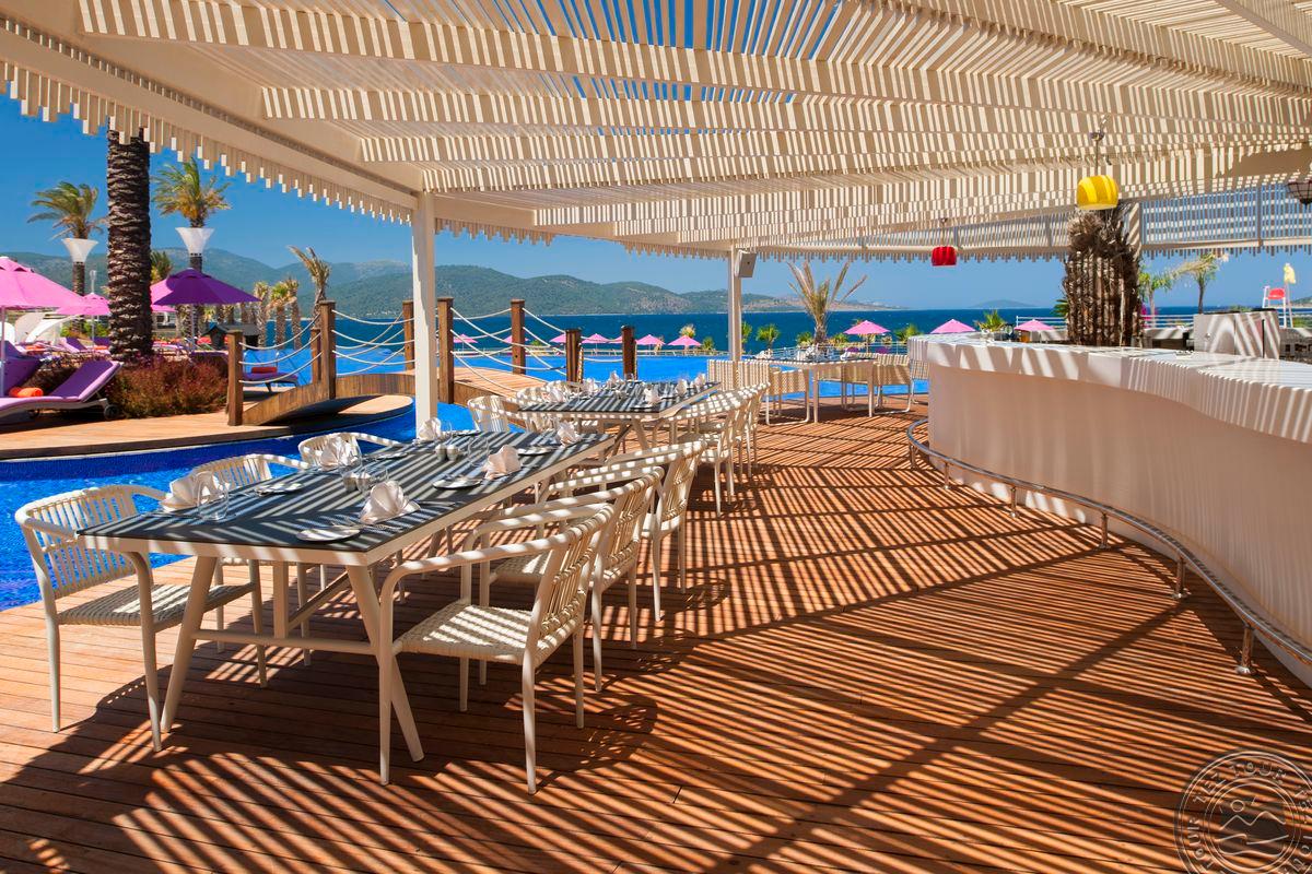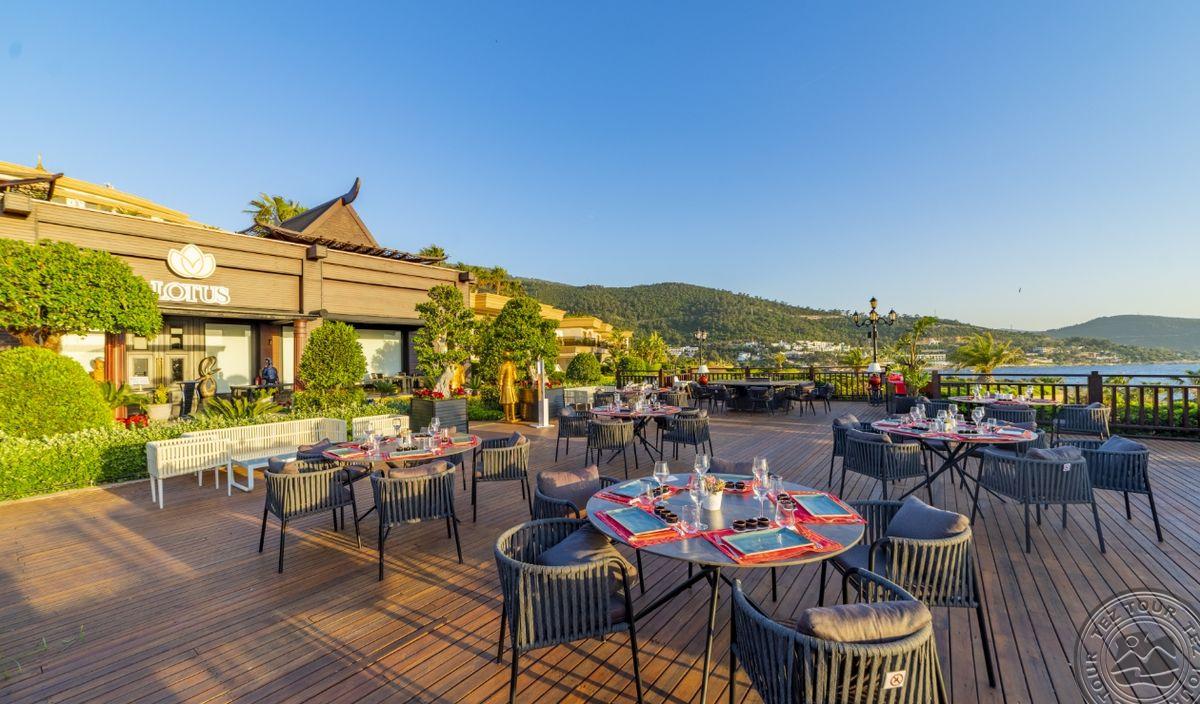 Nenusivylėme. Patiko viešbučio dizainas, norintiems privatumo, tai tobula vieta, o norint pasiekti Bodrumo centrą užtrunki 10 min. Naktimis galima dalyvauti vakarėliuose su labai talentingomis grupėmis viešbučio arenoje. Vienas iš daugelio dalykų apie maistą yra tai, kad galima rinktis restoranus, nuo italų iki Tolimųjų Rytų. Mes rinkomės italų ir Viduržemio jūros žuvies kartu su pagrindiniu restoranu. Viešbučio vadovas dažnai vaikšto ir bendrauja su svečiais, juos kalbina ir išklauso. Visas personalas noriai išpildo ir neįmanomus prašymus. Būtina paragauti alkoholinių ir nealkoholinių kokteilių. Gavome nepamirštamų akimirkų.