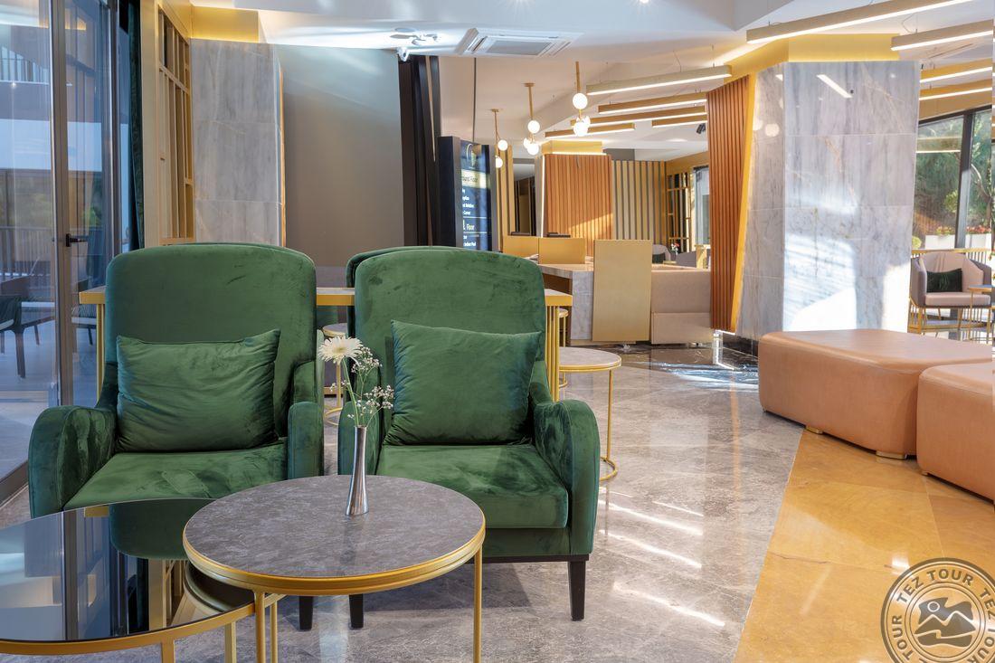 Viešbutis skirtas tik suaugusiems asmenims. Naudojama QR kodų sistema, su ja baruose, restoranuose, prie baseino galima užsisakyti gėrimus. Minimalistinio stiliaus, šviesus, šiltas ir jaukus fojė, jame vyrauja ruda ir žalia spalvos. Labai gražūs koridoriai. Kambariai labai gražūs, jaukūs, šviesūs, kvepiantys, erdvūs. Svečiams paliekama vyno ir vaisių. Mini bare – gaivieji gėrimai. Yra restoranas paplūdimyje. Italų, žuvies ir barbekiu à la carte restoranai, jų meniu nuolat keičiasi. Importiniai gėrimai nemokami tik fojė bare. Didelis, jaukus pagrindinis restoranas su gražiais krėslais. Maistą galima užsisakyti per programėlę arba rinktis iš bufeto. Maistas labai kokybiškas, labai skanūs turkiški saldumynai. Yra sporto baras. Gitaros formos baseinas, gera sporto salė. Vyksta vakaro pramogos, teminiai vakarai. Naktinis klubas dirba kas vakarą. SPA centras kvepia citrinomis, sauna nemokama, turkiška vonia mokama. Atvykę svečiai gauna nemokamą 15 min masažą. 5 min pėsčiomis iki paplūdimio.