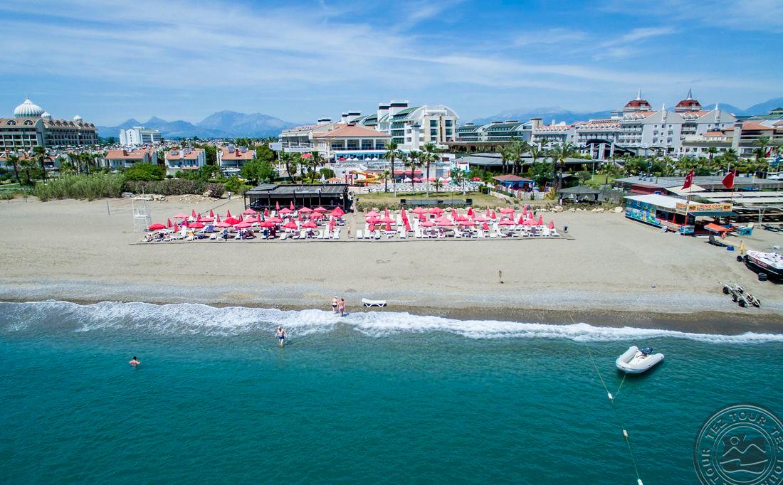 Apie 35 km iki oro uosto, apie 45 km iki Antalijos miesto centro, apie 7 km iki Beleko, Bogazkent gyvenvietėje, ant jūros kranto.
