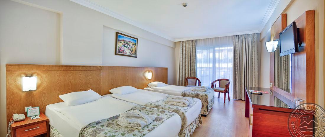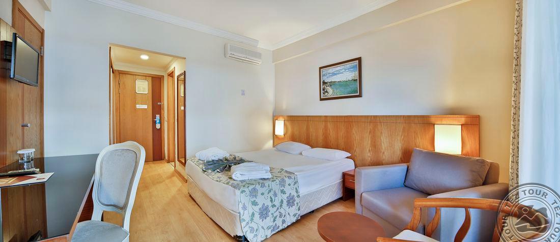 44 Economy Room tipo numeriai (žemutiniuose aukštuose, su vaizdu į viešbučio teritoriją, 22 m2).