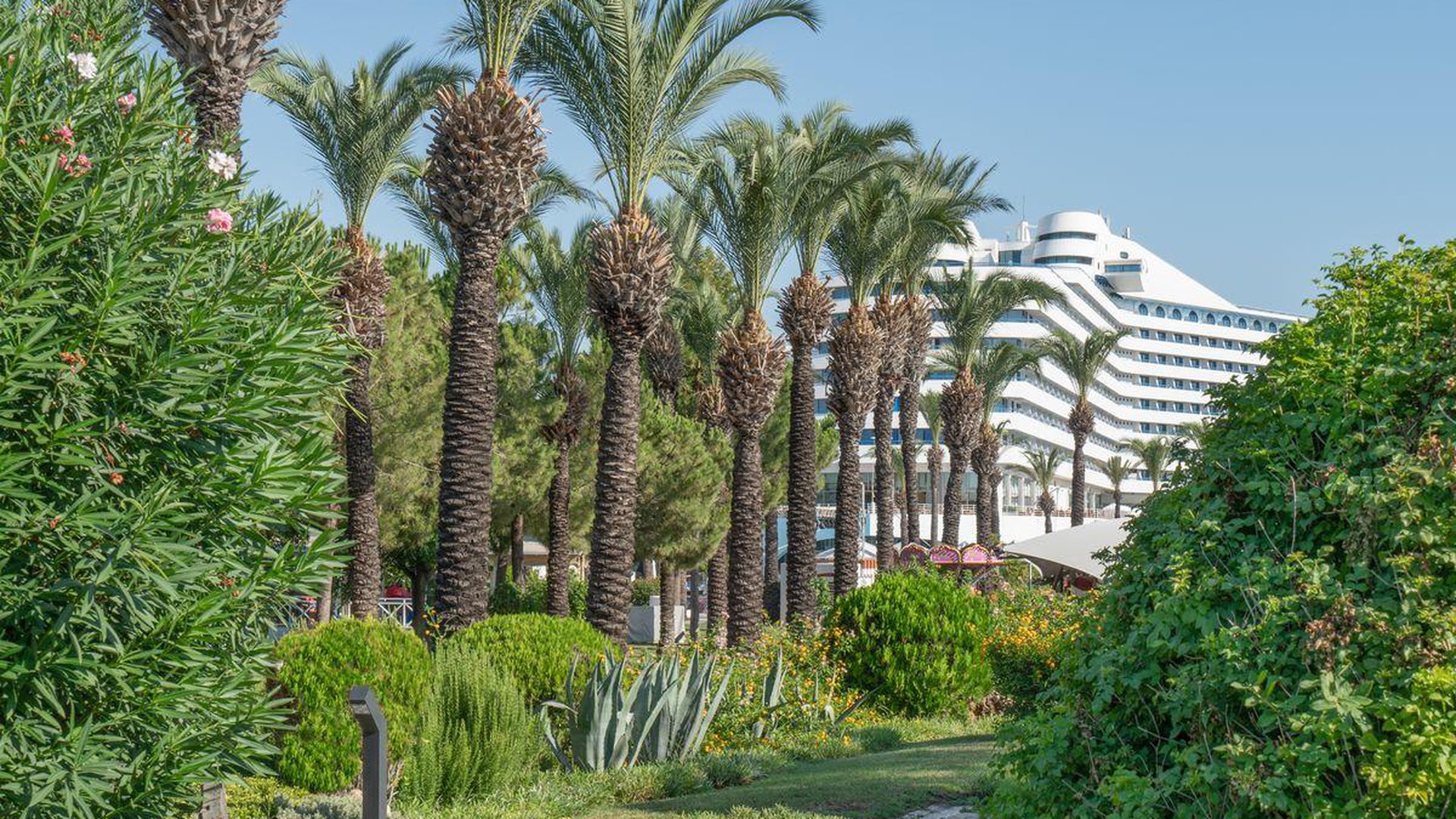Apie 10 km iki oro uosto, apie 12 km iki Antalijos miesto centro, ant jūros kranto.