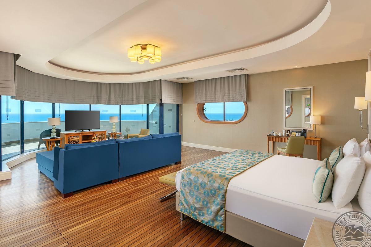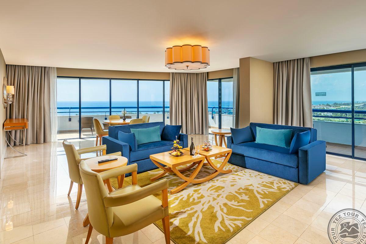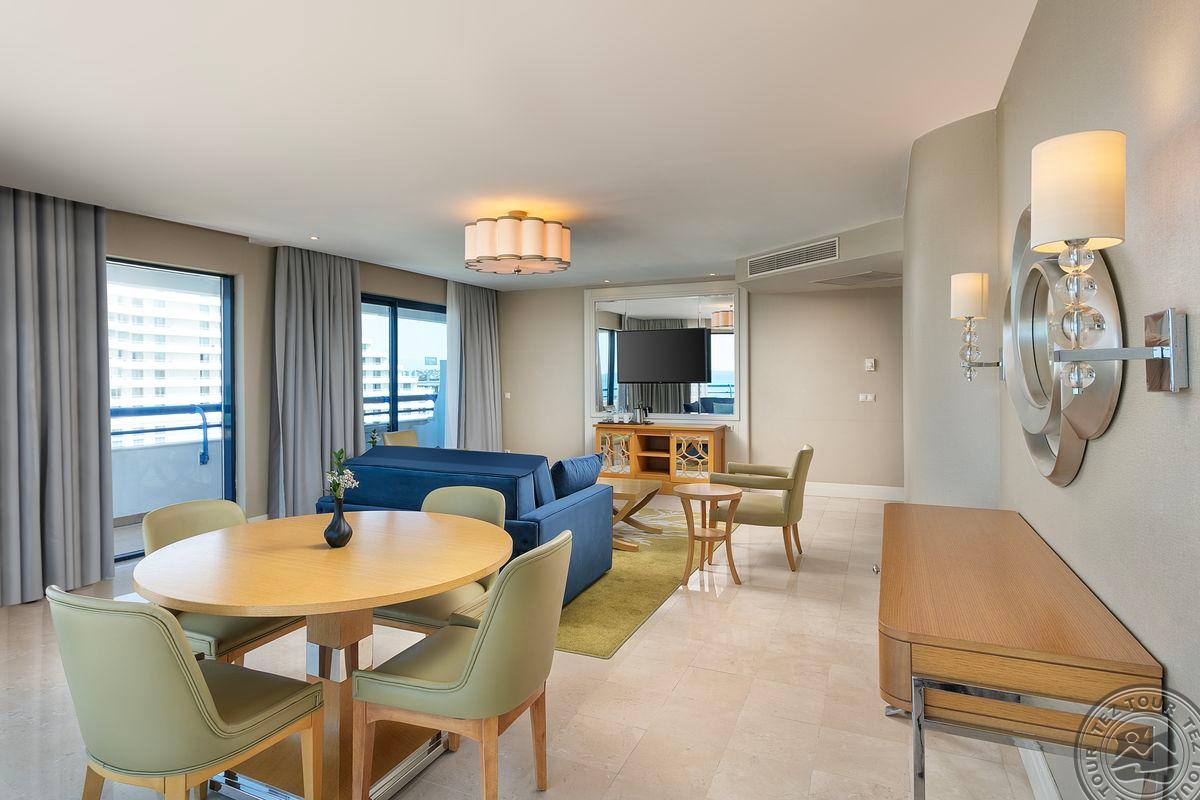 2 trijų kambarių Colonel Suite tipo numeriai (su vaizdu į jūrą, svetainė, 2 miegamieji: vienas iš jų atskirtas durimis, grindys – kiliminė danga, 2 vonios kambariai: vienas su sūkurine vonia, kitas su dušo kabina, 2 TV, maks. 5+1 asm., 120 m2).