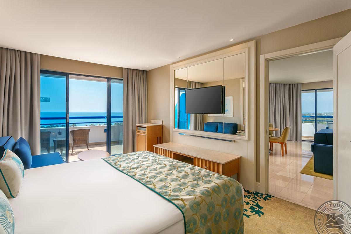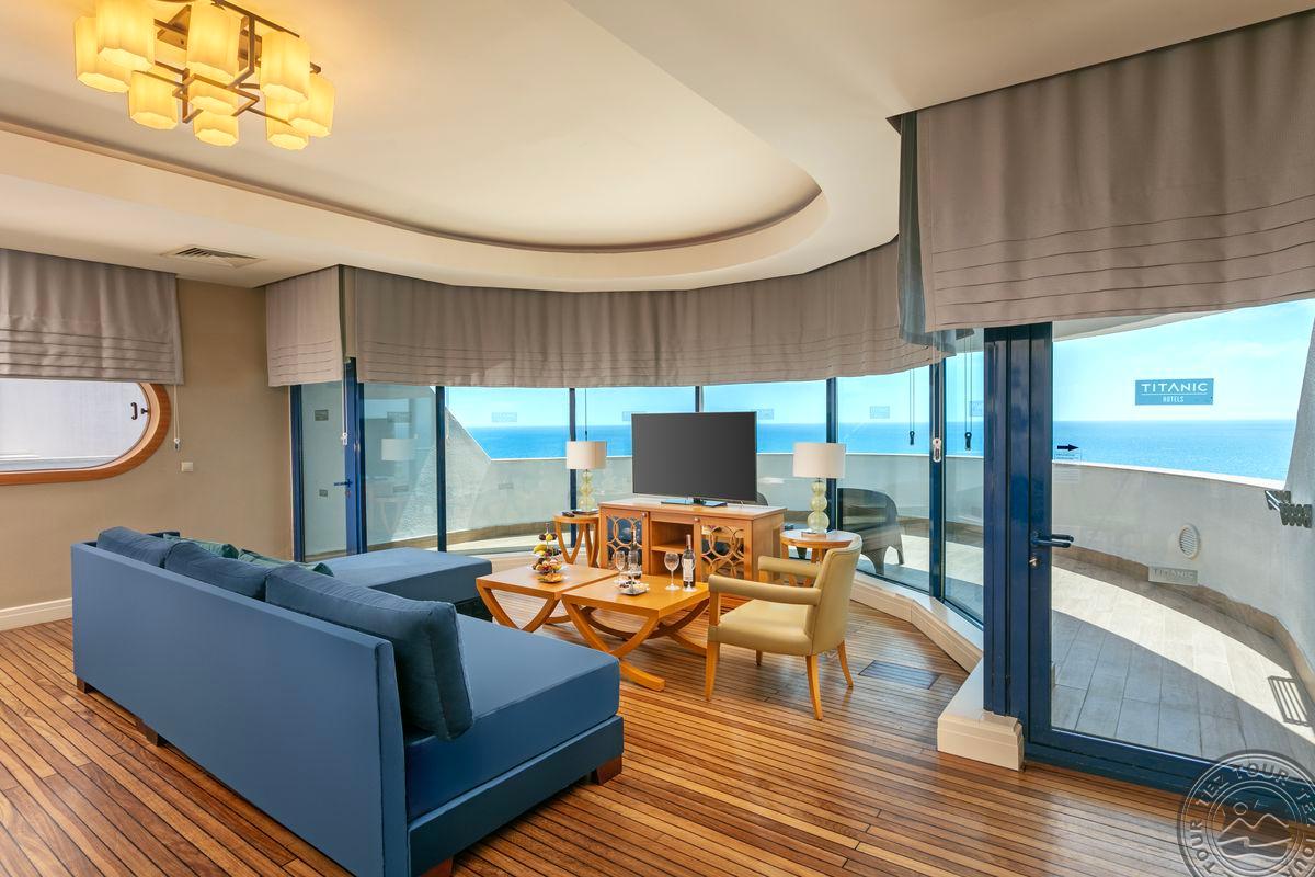 2 dviejų kambarių Admiral Suite tipo numeriai (su vaizdu į jūrą, 2 miegamieji atskirti durimis, 2 vonios kambariai: vienas su sūkurine vonia, kitas su vonia, terasa; maks. 5+1 asm., 80-150 m2).