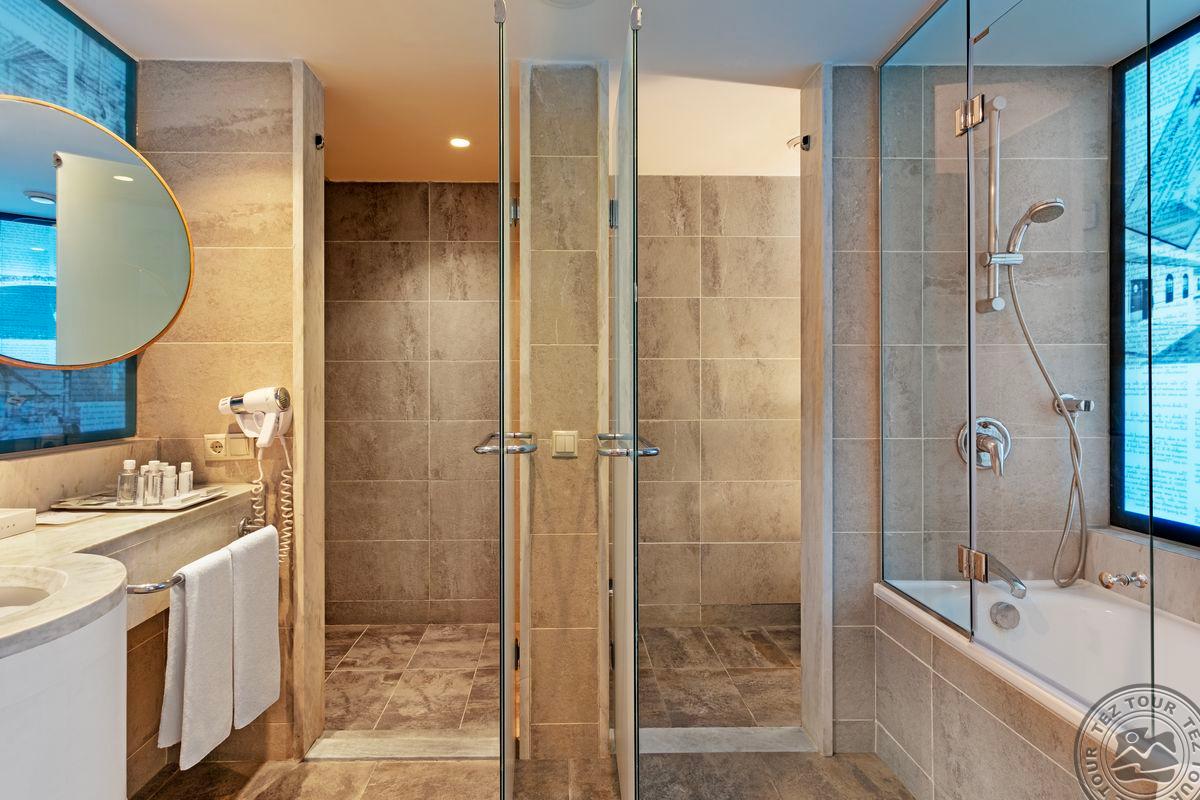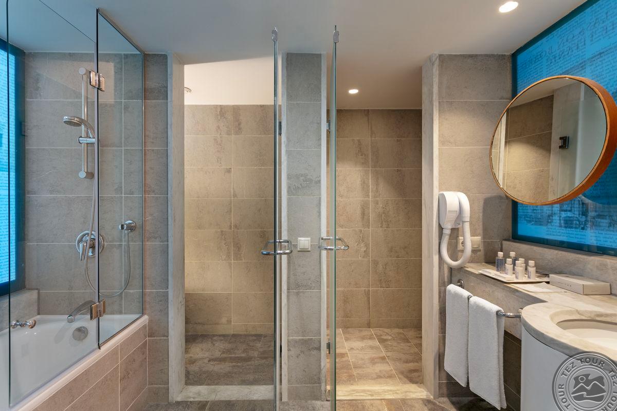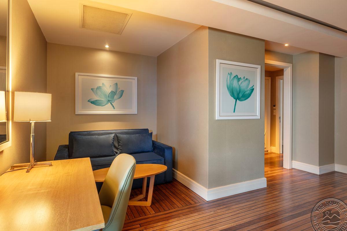 15 vieno kambario junior suite tipo numerių (miegamasis su svetainės zona, maks. 3+1 asm., 50 m2).