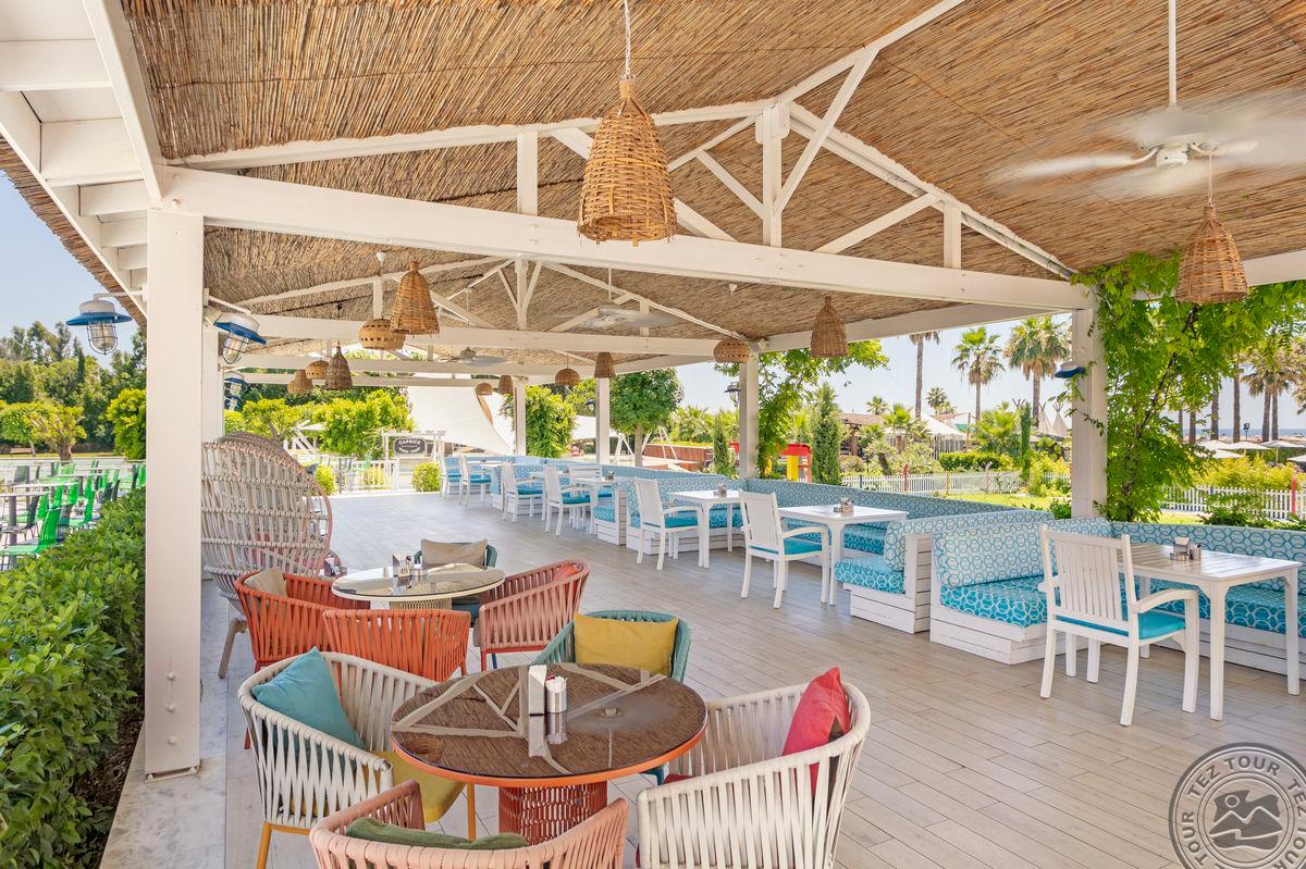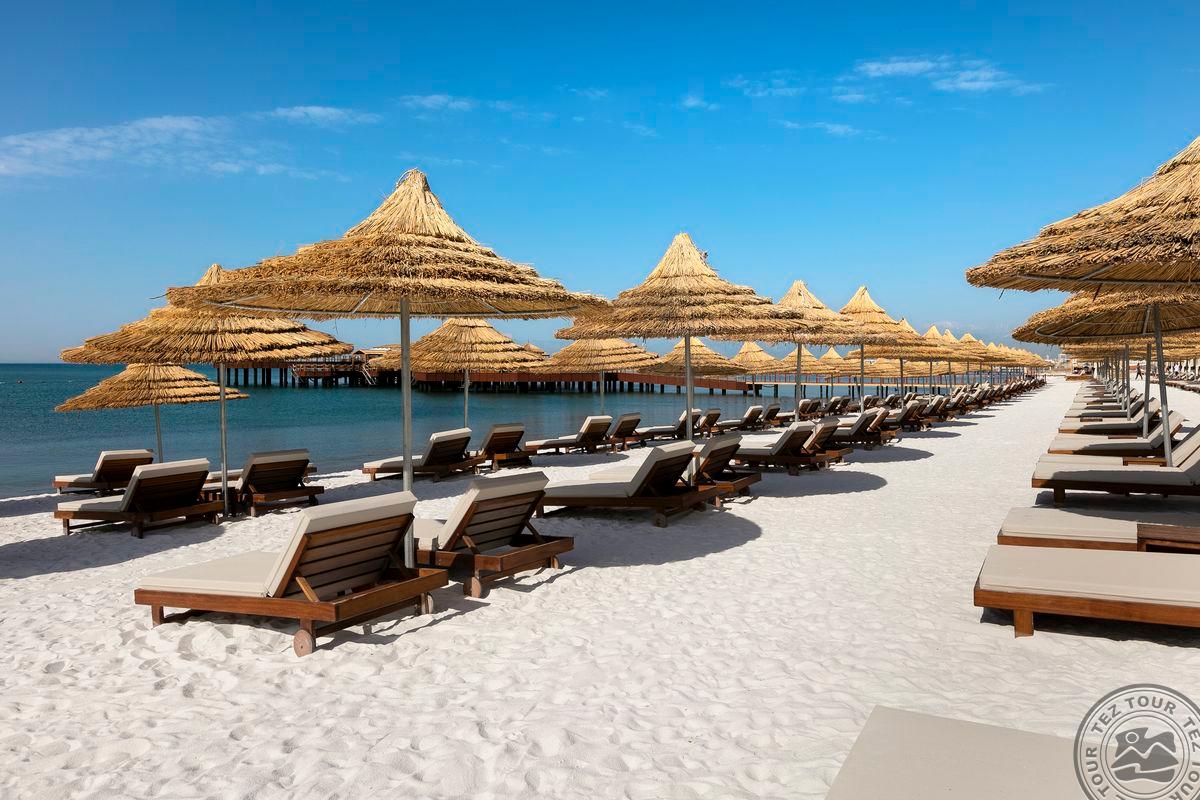 Apie 15 km iki oro uosto, apie 25 km iki Antalijos miesto centro, ant jūros kranto.