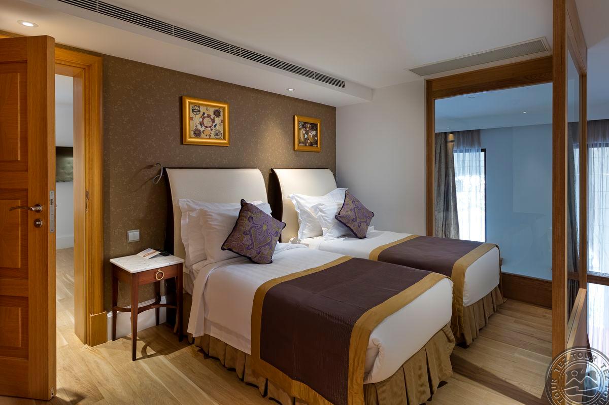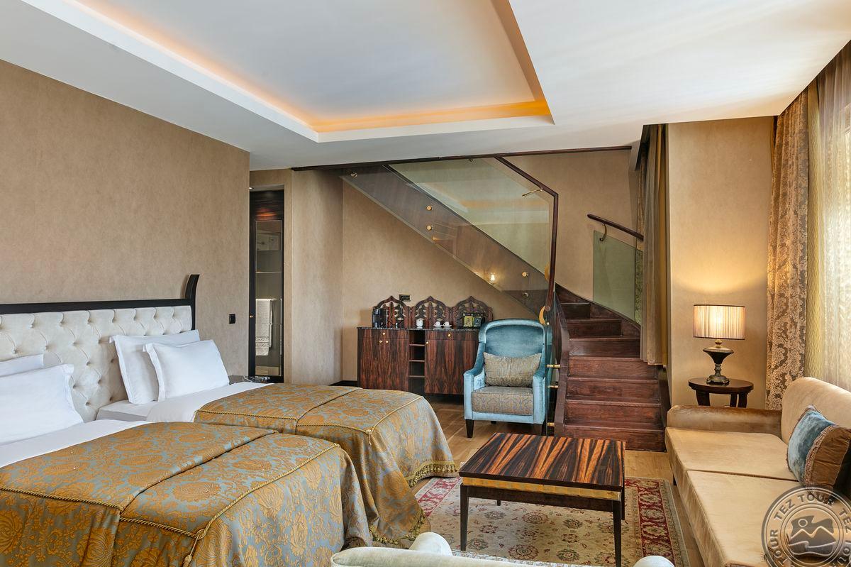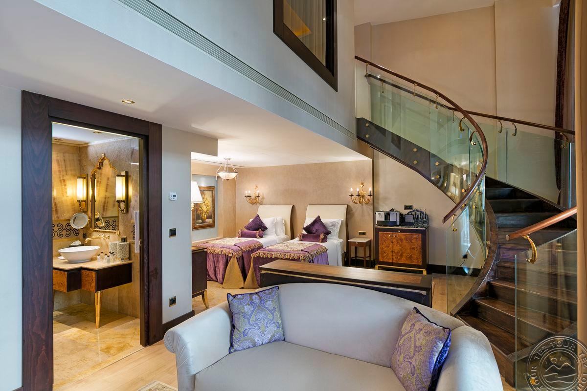 Grand duplex suite tipo numeriai (išsidėstę 5-me aukšte, antrame aukšte: miegamasis, sūkurinė vonia, svetainės zona; pirmame aukšte: 2 atskiros lovos, svetainė; maks. 5 asm. + kūdikis, 145 m2).