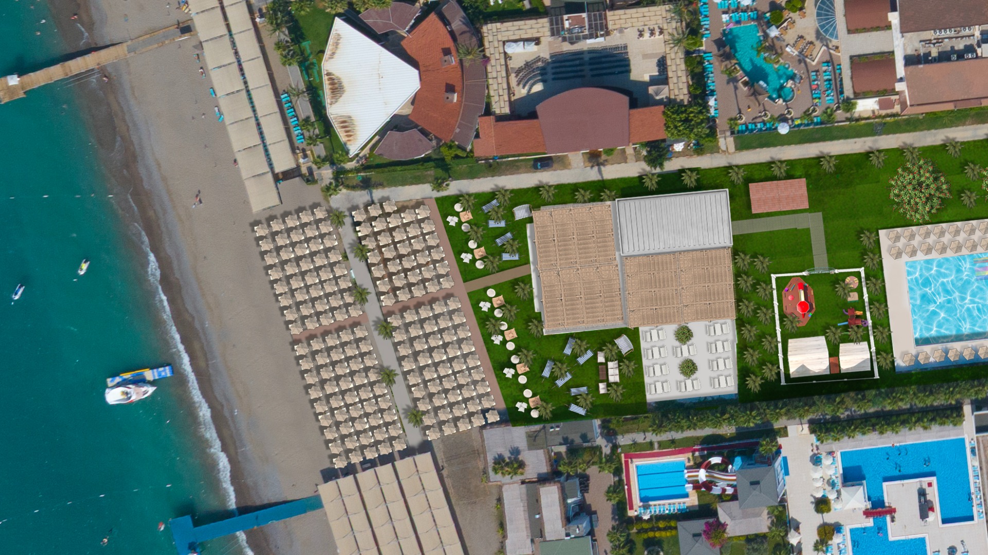 40 km iki Antalijos oro uosto, 250 m iki privataus smėlio paplūdimio.