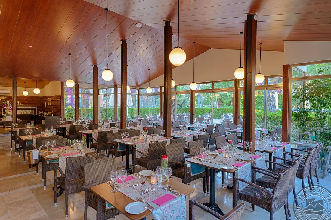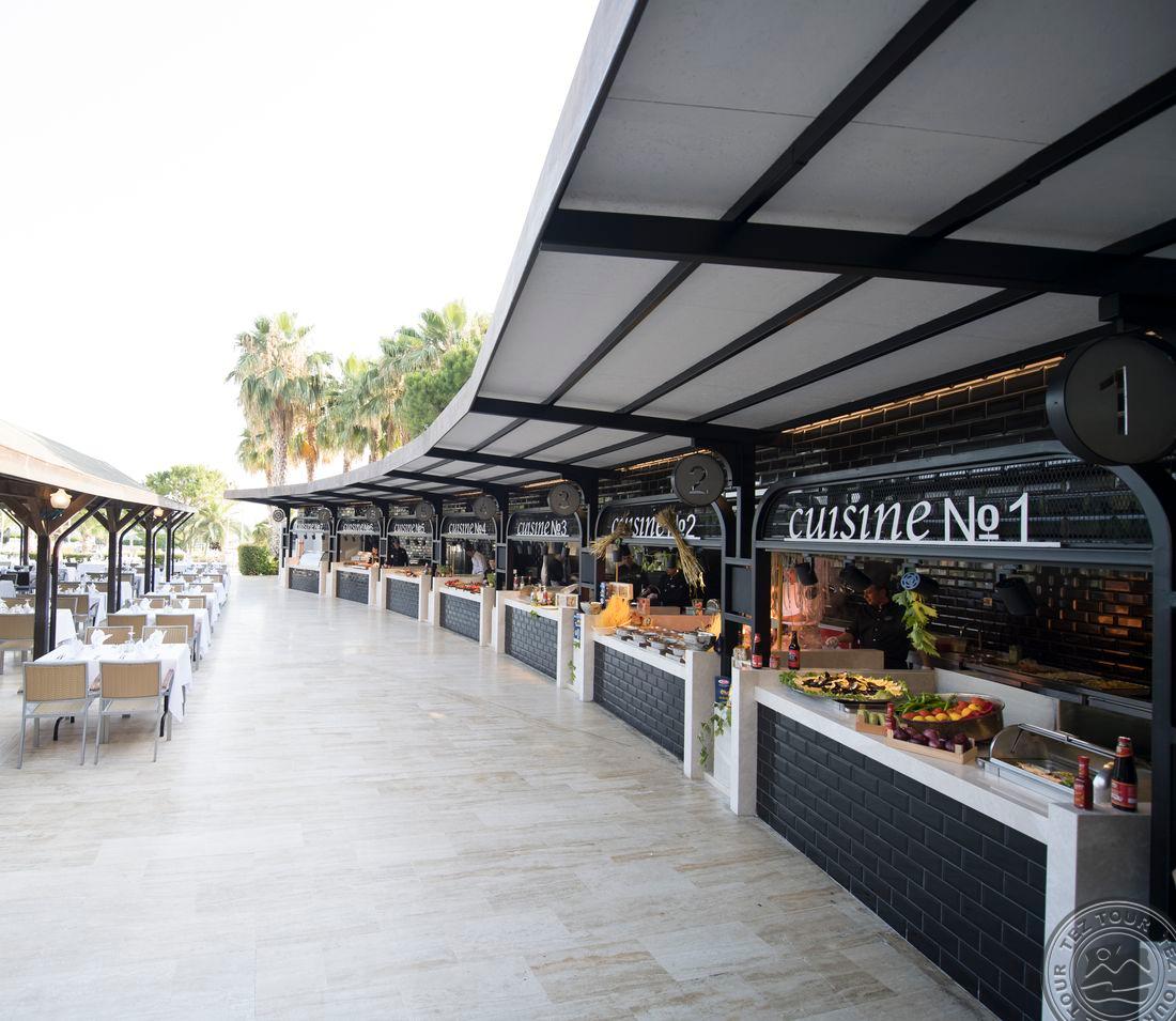 • a la carte restoranai: 6 (turkiškas, žuvies, kinų, italų (12+) - pagal išankstinę rezervaciją, viešnagės mietu vieną restoraną vieną kartą galima aplankyti nemokamai, Steak House - už papildomą mokestį)