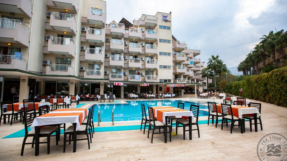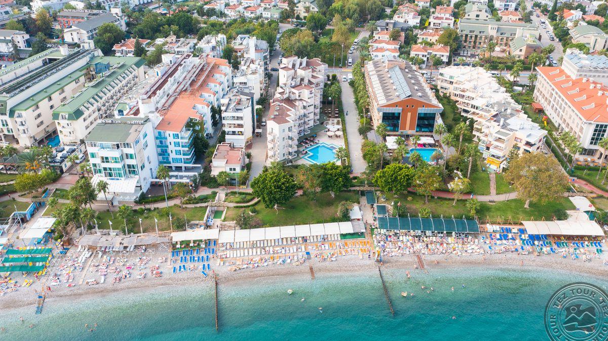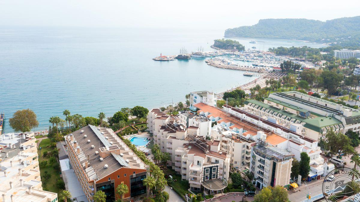 Viešbutis įsikūręs Kemero mieste, ant jūros kranto. Netoliese- parduotuvės, kavinės. Svečiams siūloma atsipalaiduoti prie baseino, išbandyti vandens sporto pramogas, pasivaikščioti po gyvybingą Kemero centrą, leistis į žygius pėsčiomis po apylinkes žymiuoju Likijos keliu ar kitais maršrutais bei nuvykti į šalia šio pajūrio kurorto esančius tradicinius kaimelius. Rekomenduojama šeimų poilsiui.