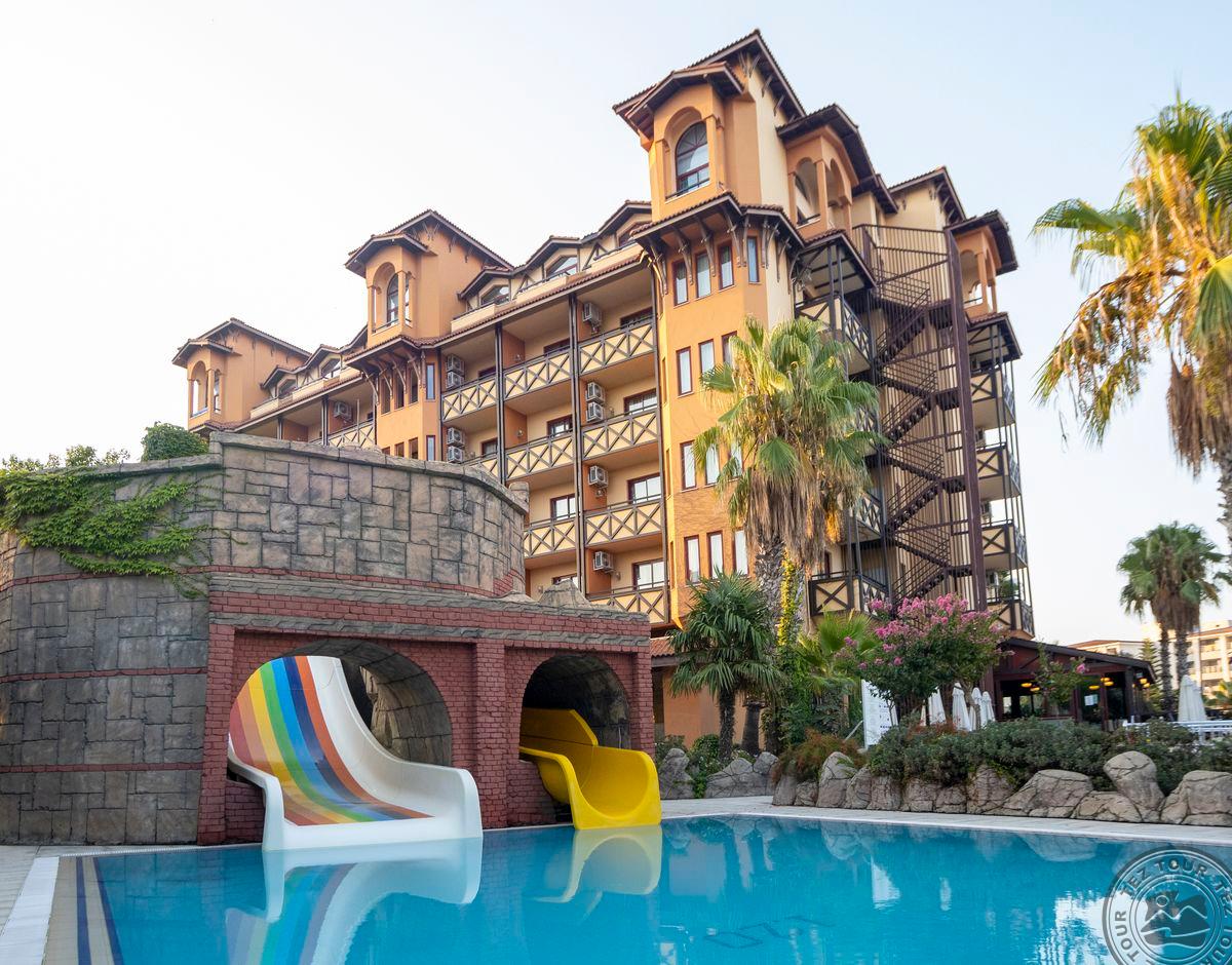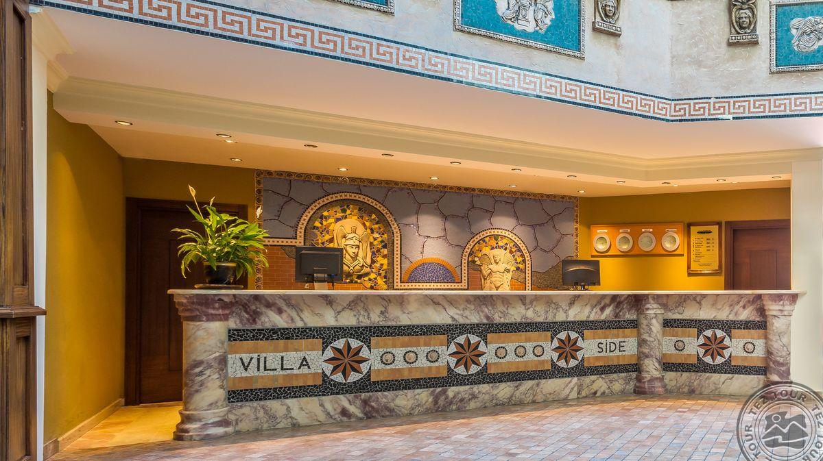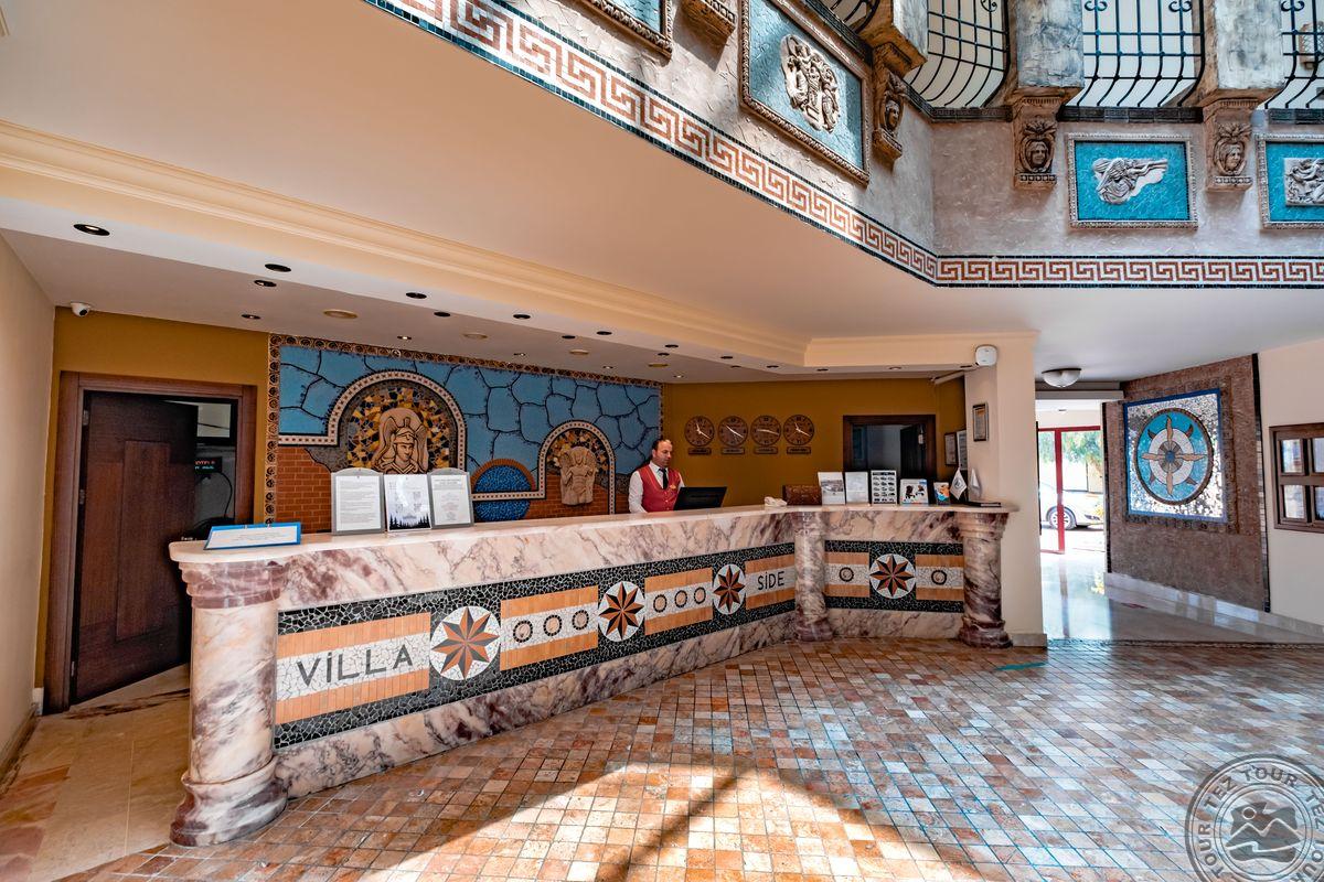 „Villa Side Hotel“ – 4 žvaigždučių viešbutis, kuriame yra privatus paplūdimys ir lauko baseinai su čiuožyklomis. Viešbutis yra už 4 km nuo Sidės senamiesčio, už 60 km nuo Antalijos tarptautinio oro uosto ir už 10 km nuo Manavgato miesto centro. Komplekso SPA centre siūlomi masažai, yra sūkurinė vonia, turkiška pirtis ir sauna. Už 150 metrų esančiame privačiame viešbučio paplūdimyje pastatyti lauko gultai, yra baras, kuriame galėsite atsigaivinti. Komplekse įrengta moderni treniruoklių salė. Rekomenduojame šeimos poilsiui.