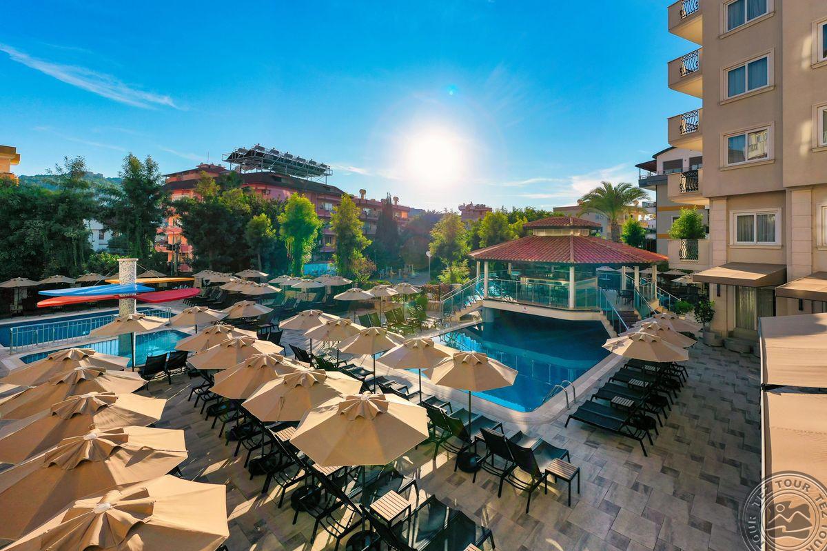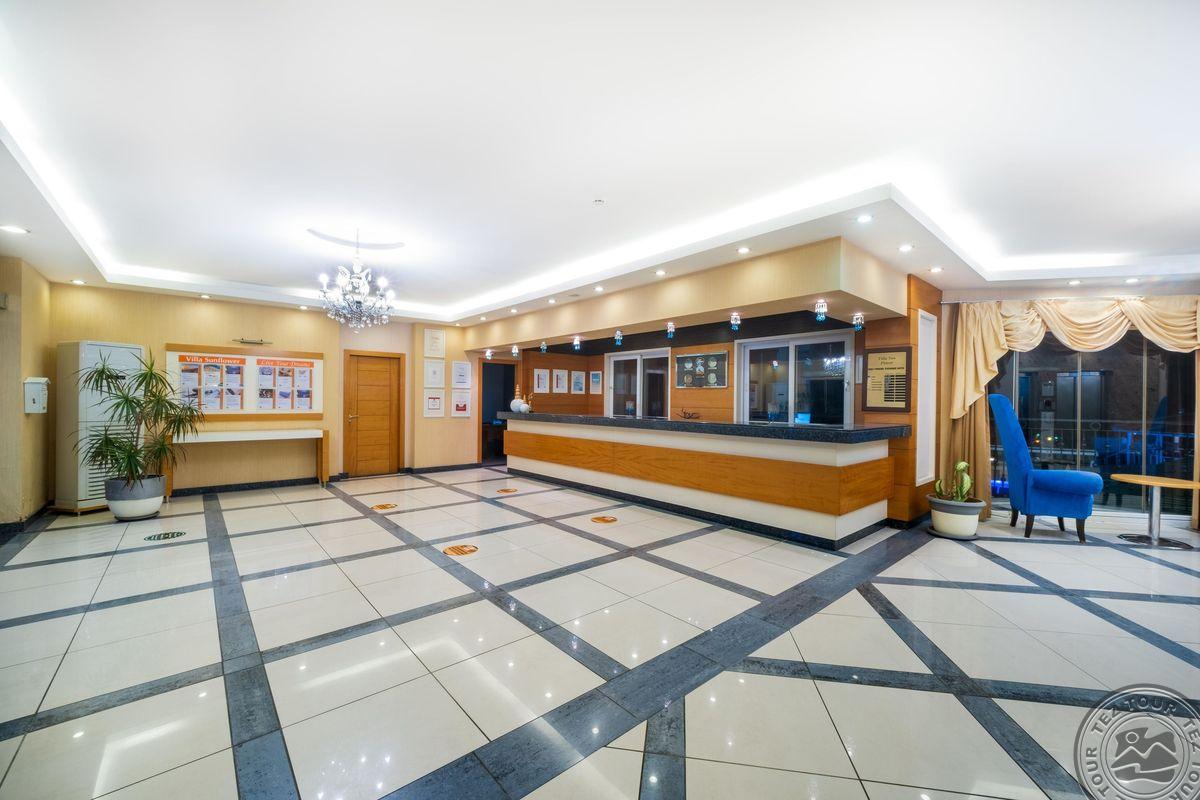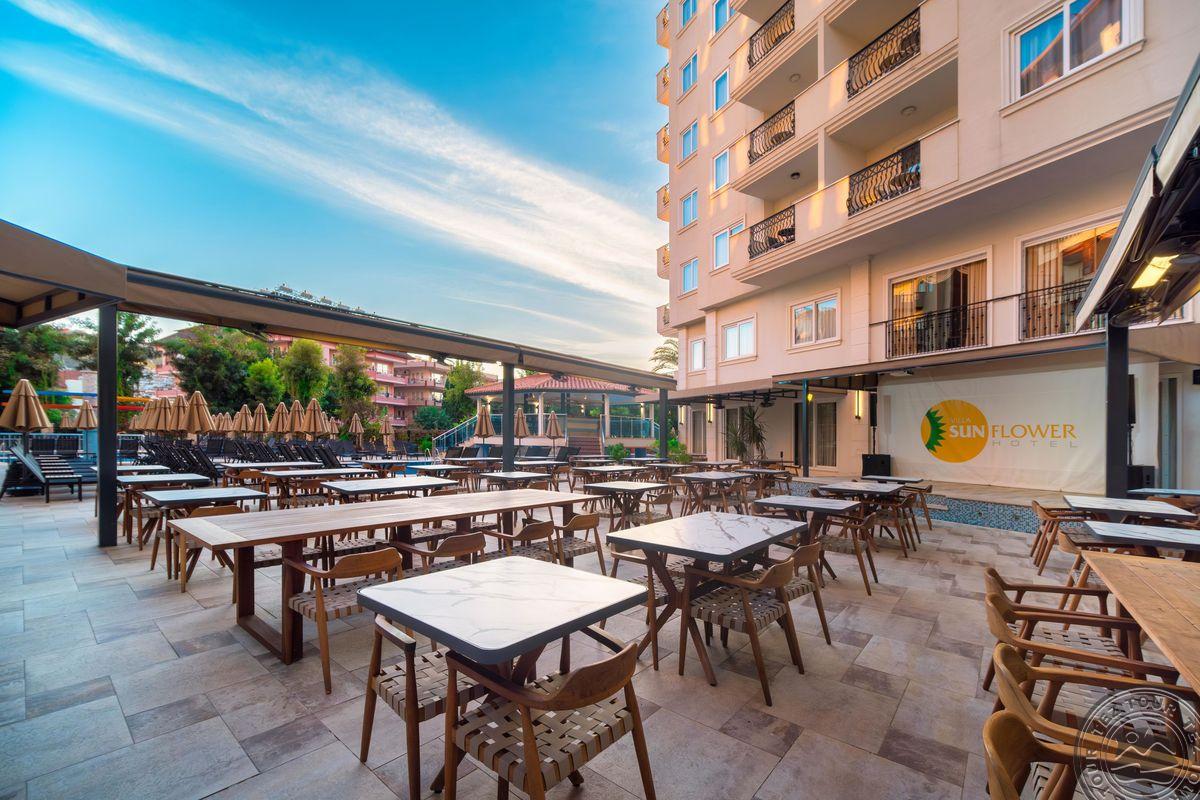 Viešbutis Villa Sunflower kviečia patirtį Alanos žavesį ir unikalų kraštovaizdį. Viešbutyje yra penki baseinai, pritaikyti tiek suaugusiems, tiek vaikams. Atnaujinti kambariai, "Viskas įskaičiuota" maitinimo planas ir netoliese esantis paplūdimys padarys jūsų atostogas nepakartojamas. Draugišku personalas ir 130 km nuo Antalijos oro uosto įsikūrusi apgyvendinimo įstaiga Villa Sunflower kviečia į svajonių atostogas Alanijoje.