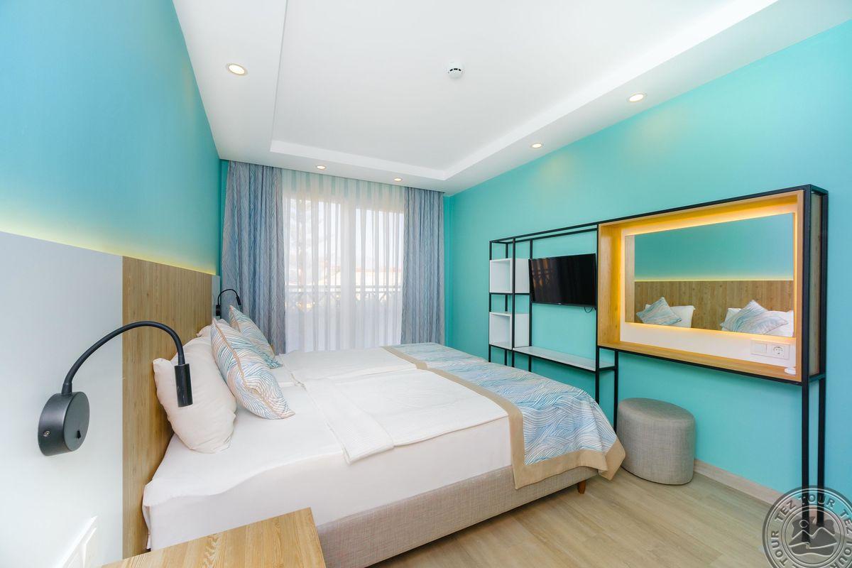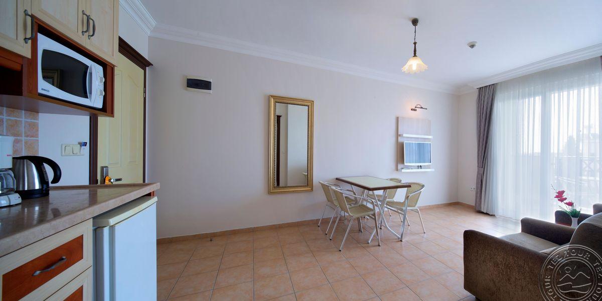 40 dviejų kambarių Junior Suite Room tipo numerių (svetainė su virtuve, miegamasis atskirtas durimis, maks. 4 asm., 30-35 m2).
