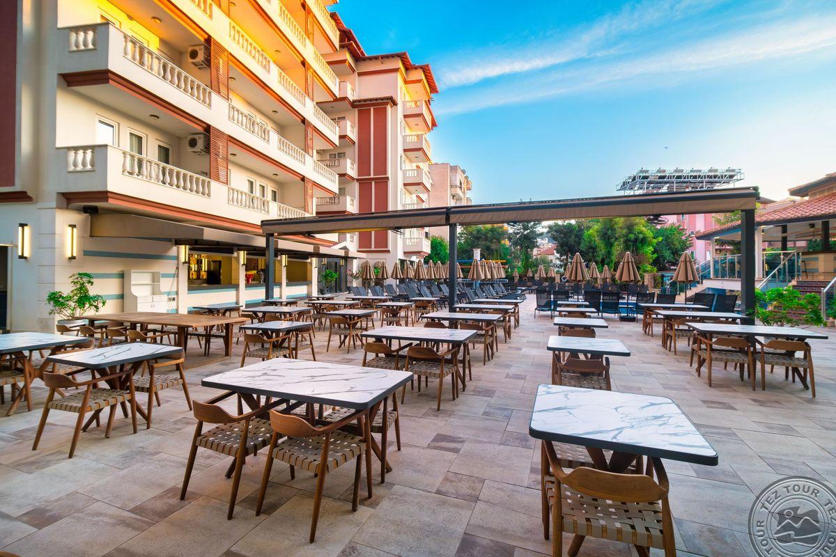Puikus viešbutis, skanus maistas, buvo ir jūros gėrybių, ledų, daug vaisių, geri, malonus darbuotojai. Apgyvendino kitam pastate per gatve( per tunelį įėjimas iš pagrindinio). Tai tas pastatas senos statybos, bet mums netrugdė, ne sėdėti kambarį atvažiavom. Svarbiausia buvo skanus maistas ir netoli centro. Iki jūros 20 min pėsčiomis, bet mums tai netrugdė, prasivaiksciodavom, bet vešdavo ir autobusiukas nemokamai 4 kartus ryte, ir 2 k. po pietų parvešdavo. Šalia viešbučio kelionių agentūra, malonus vyrukas, nebrangininkas, dar ir nuolaidą padarė kaimynams. Su džipais puikus kelionės maršrutas.