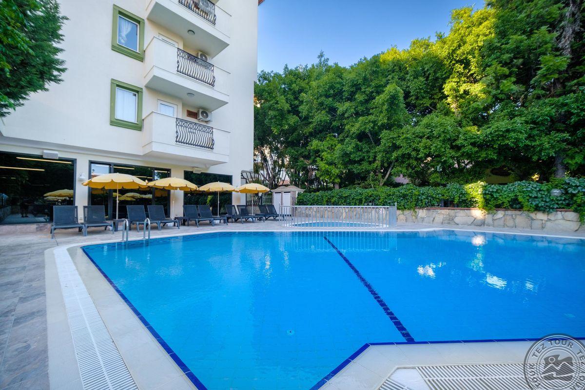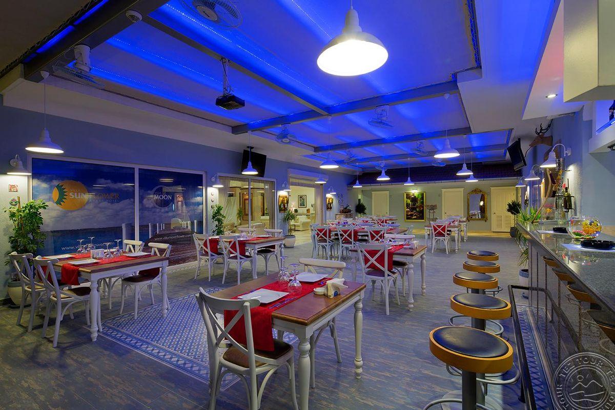 Turkija, Villa Sun Flower Hotel 4* viešbutis neblogas 7/10. Maistas mums patiko, gal galėjo būti įvairesni pusryčiai. Tai labai ramus viešbutis. Daugiau vyresnio amžiaus keliautojų. Gaila kad nėra jokios animacijos ir renginių. Vakarais nėra kas veikti. Per atostogų laiką tik du kartus buvo koncertėlei po pusę valandos. Pliažas už 20 min. ėjimo labai geras. Autobusas ryte veža nuo 9-30 iki 11 val. O parveža tik 16 val. Nors nuo 12-30 iki 14 val. yra pietų meta. Todėl jei norite pietauti, turite eiti pėsčiomis. Vyresnio amžiaus žmonėms ar su vaikais nelabai tinka.