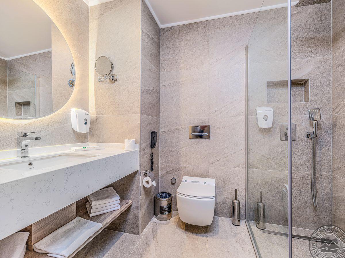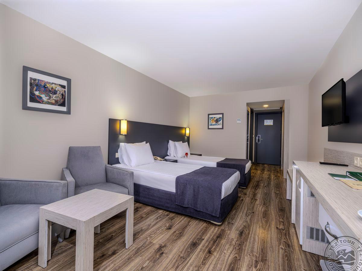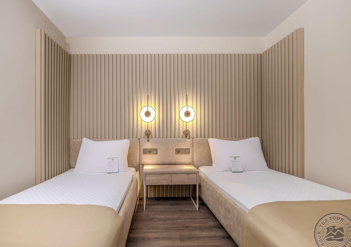229 standard rooms tipo numeriai (balkonas arba prancūziškas balkonas, maks. 2+1 asm., 23–27 m2).