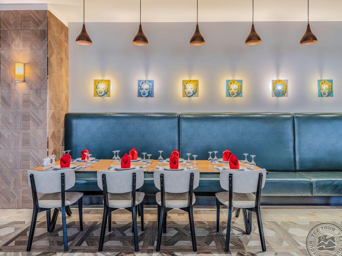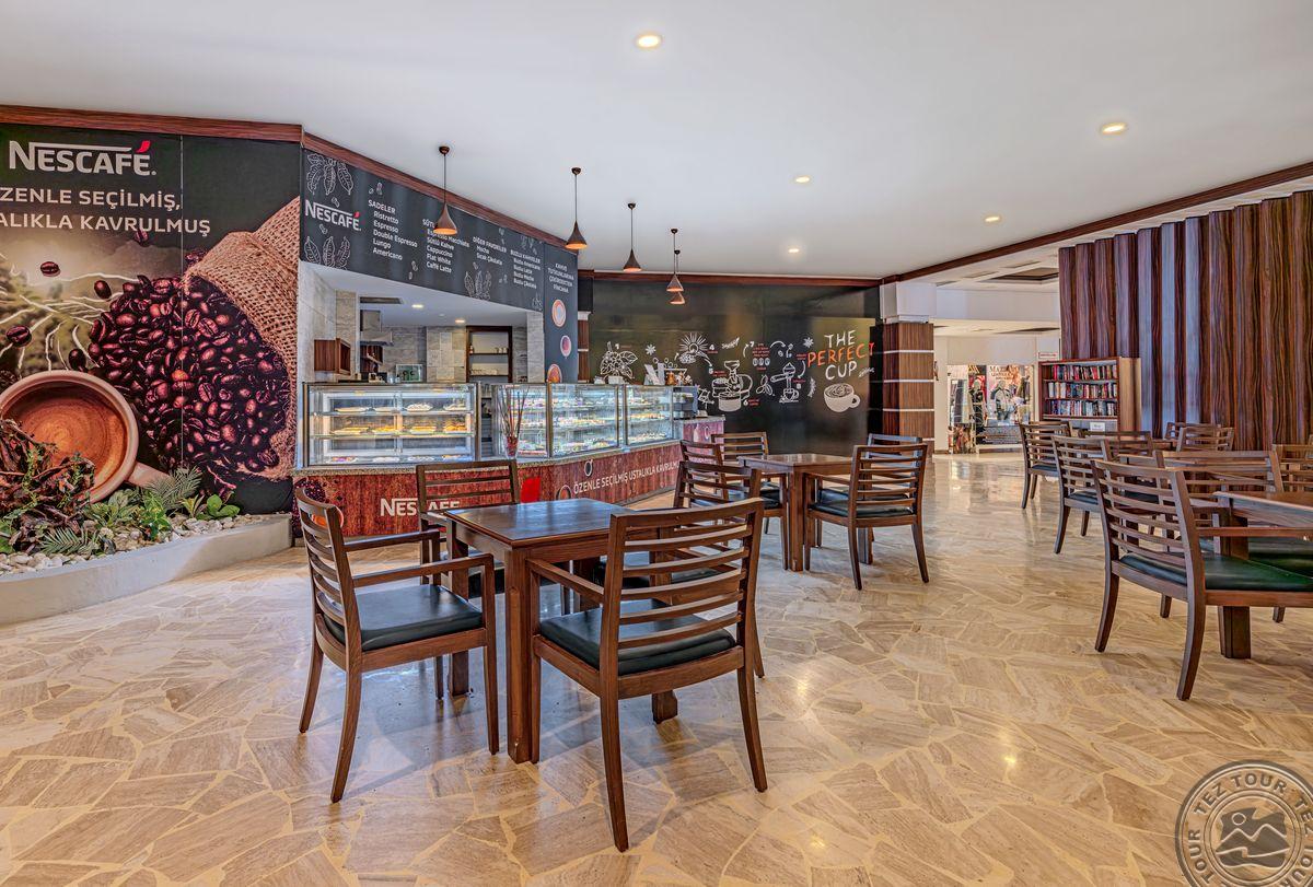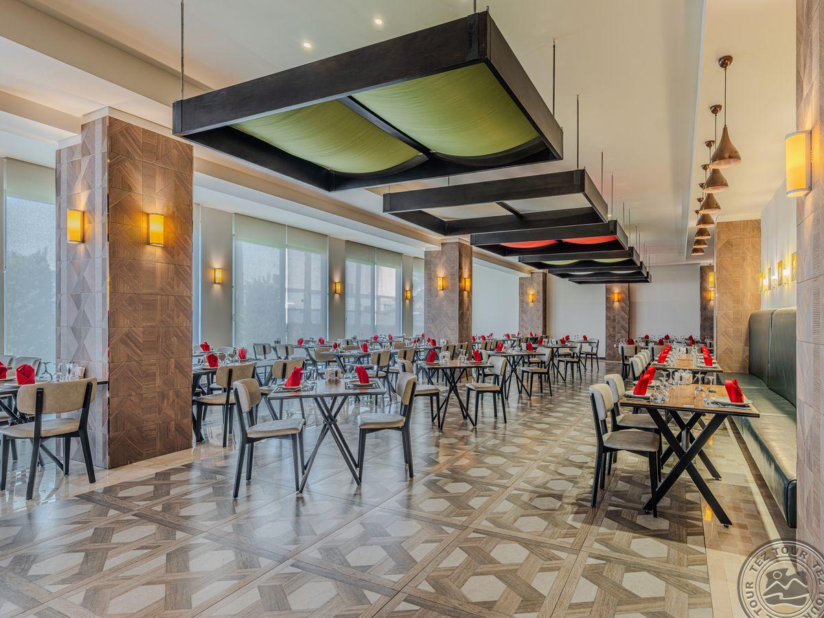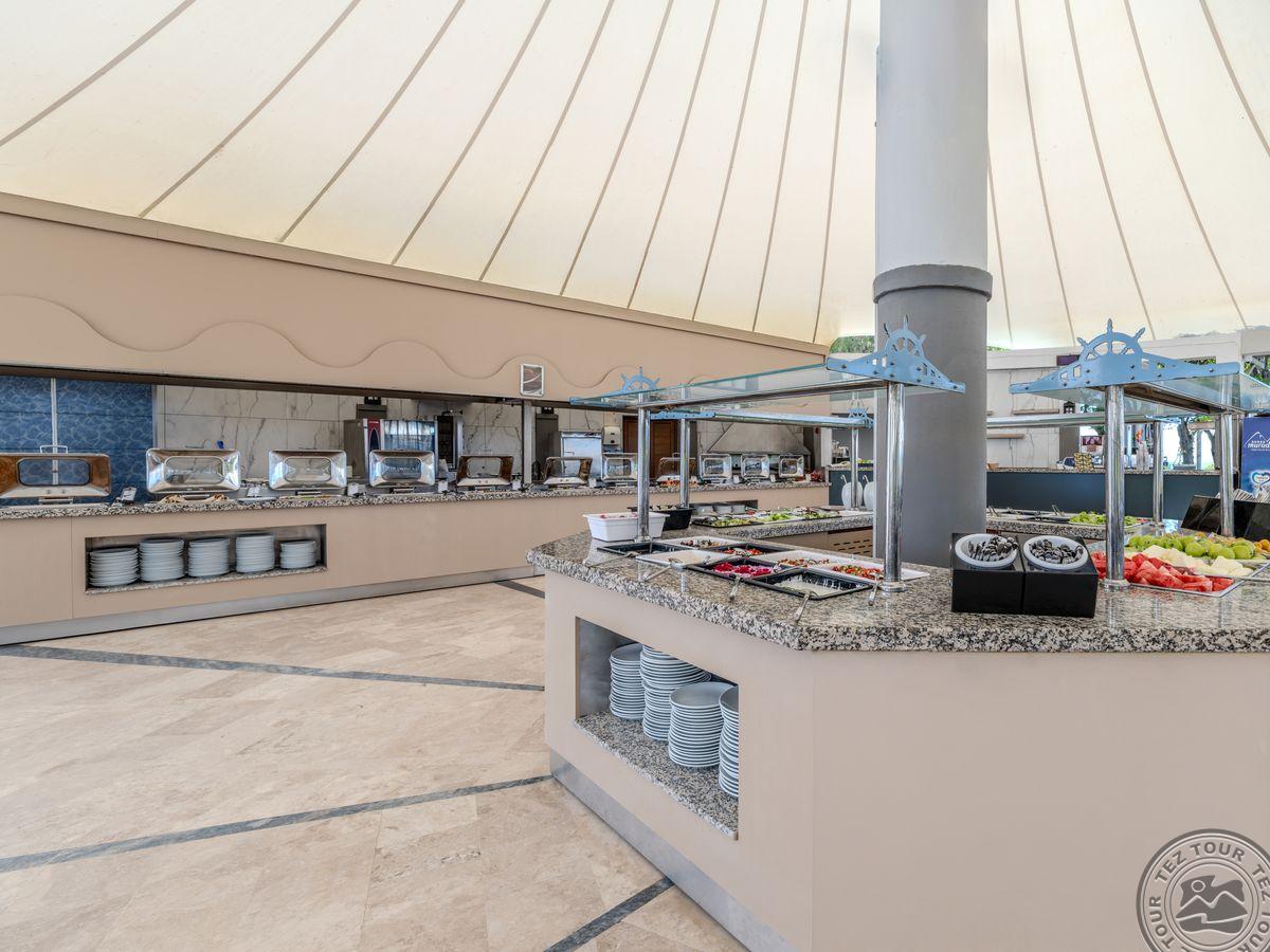 • a la carte restoranai: 3 (italų, turkiškas – pagal išankstinę rezervaciją, gyvenant ne mažiau nei 7 naktys galima apsilankyti vieną kartą – nemokamai)
