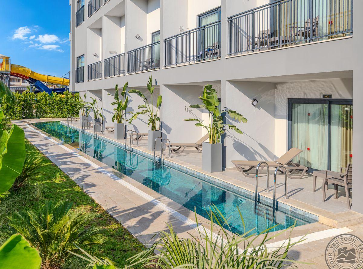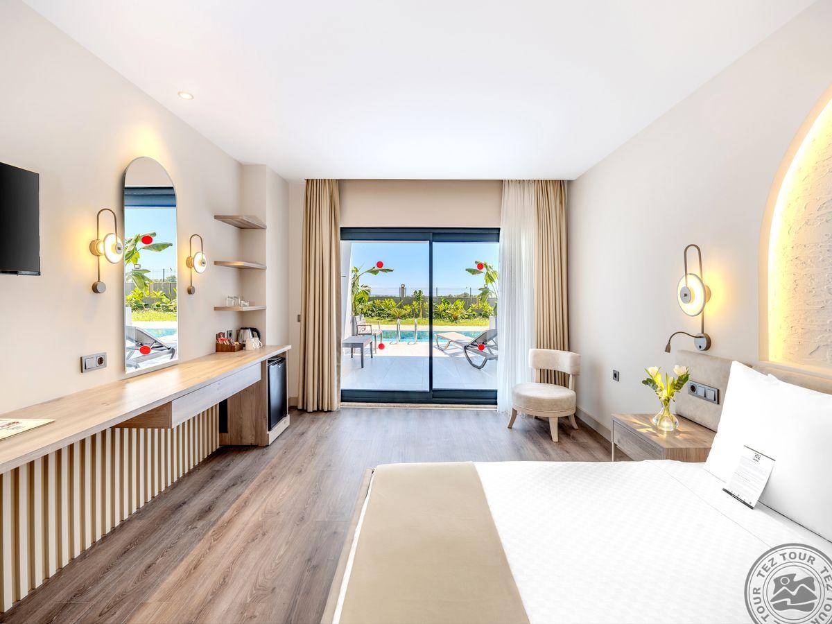 29 dviejų kambariųFamily Suite Room With Swim-Up +16 tipo numeriai (tiesioginis išėjimas prie baseino, 2 miegamieji atskirti durimis; maks. 5 asm., 38 m2).