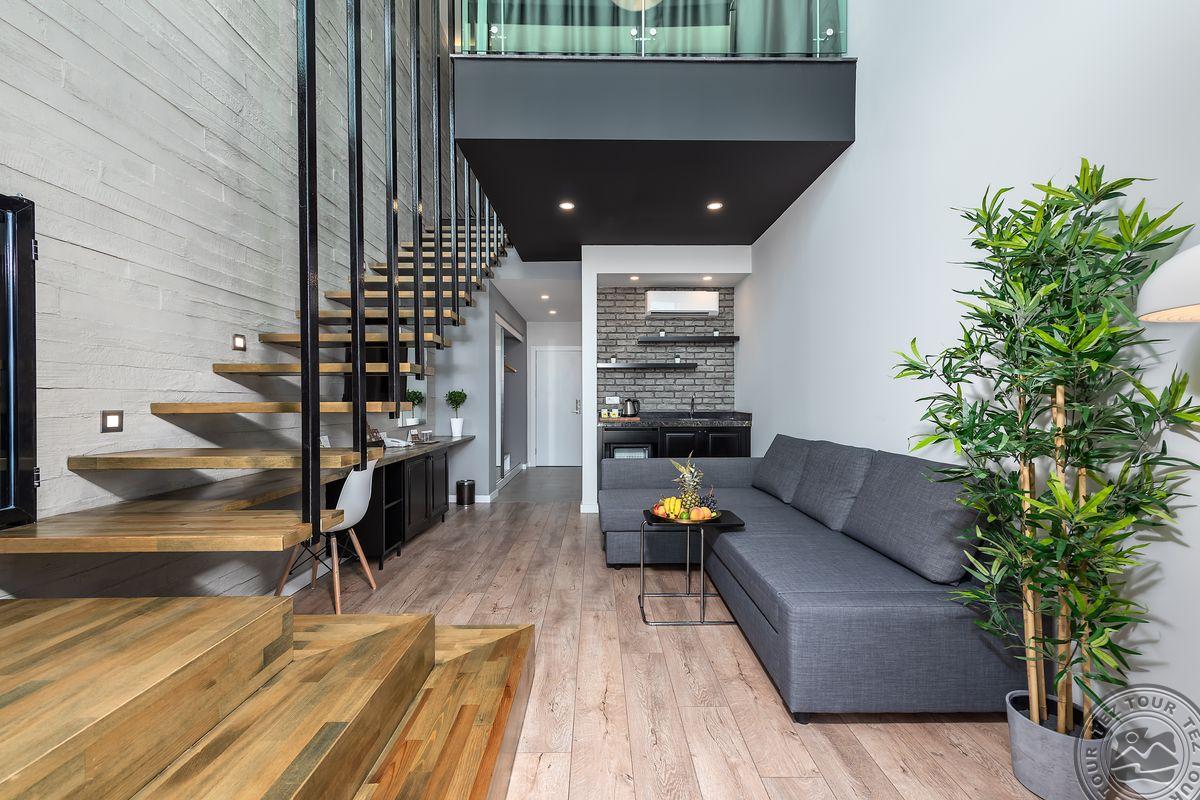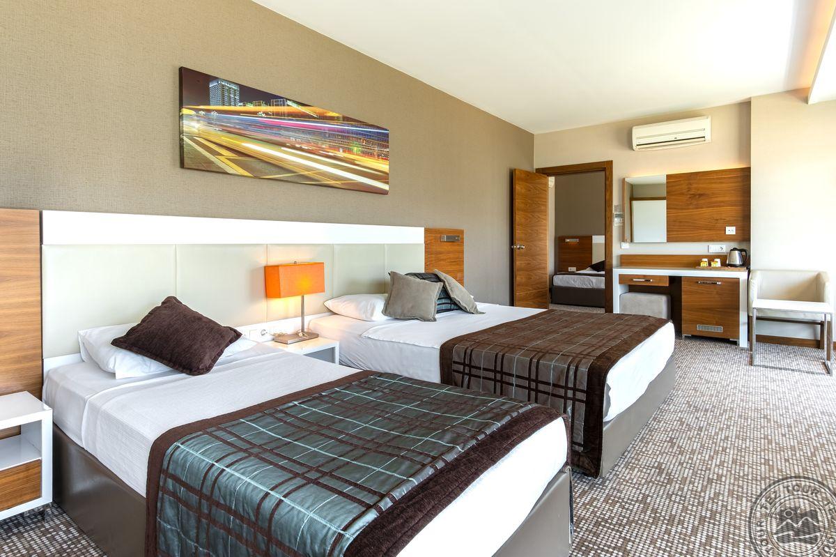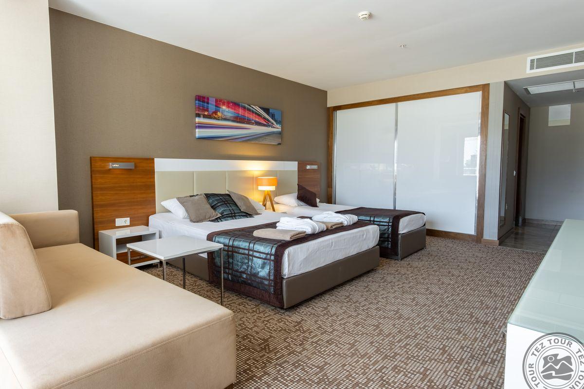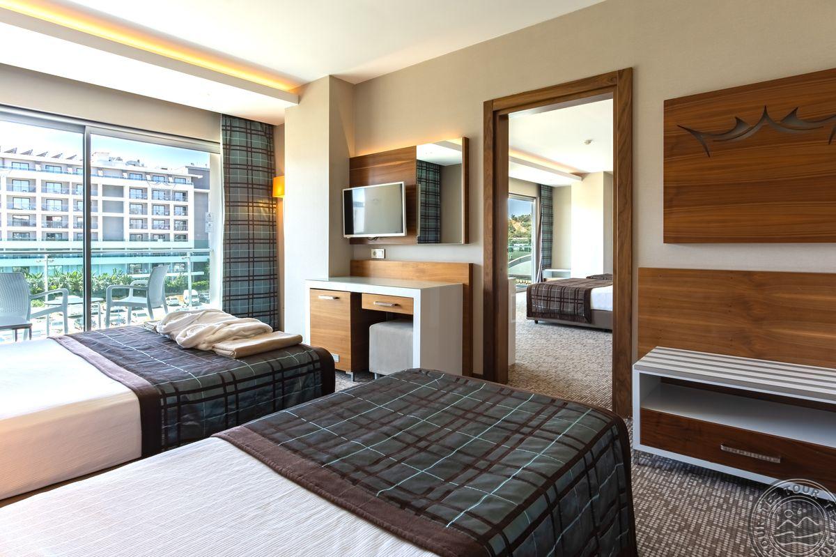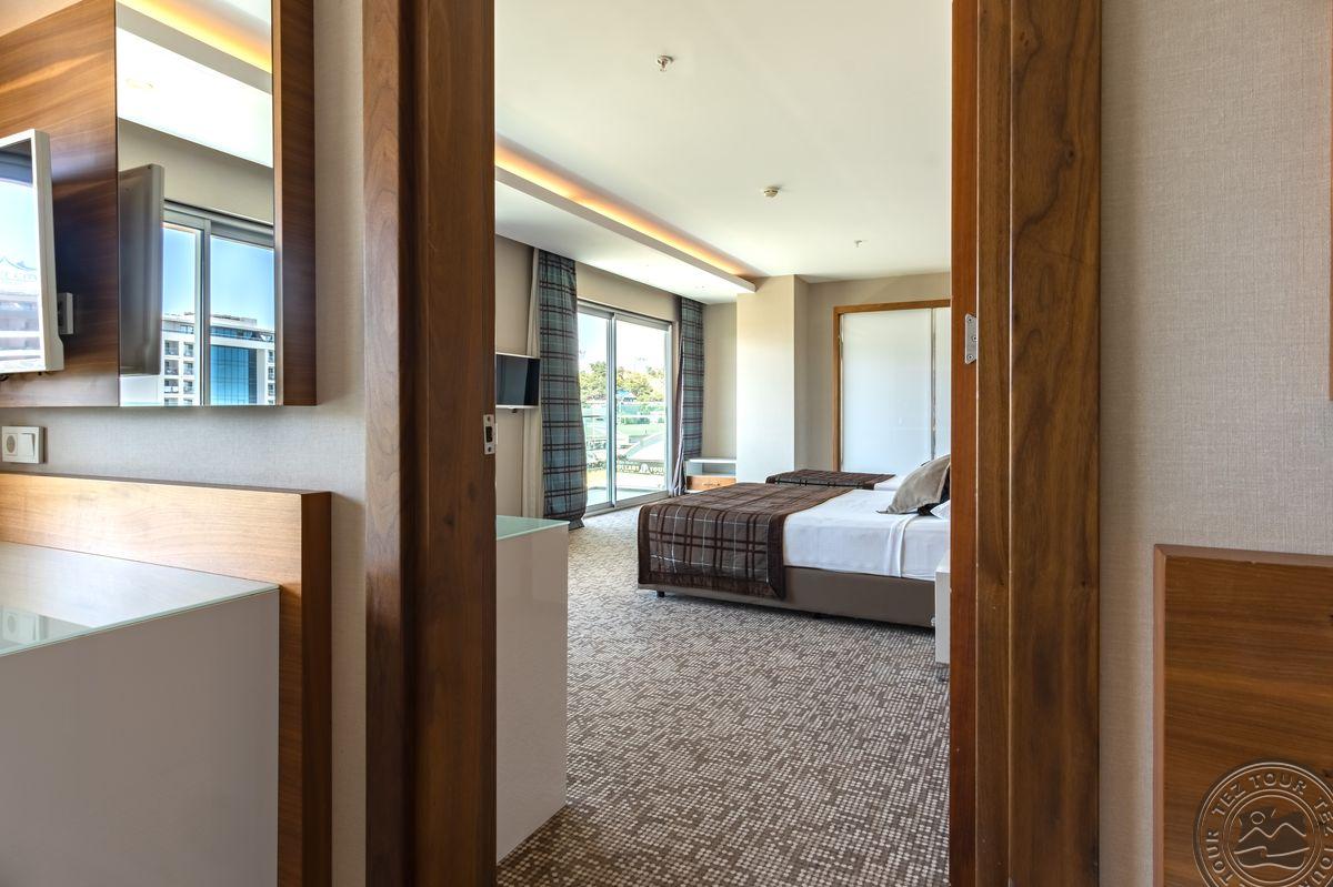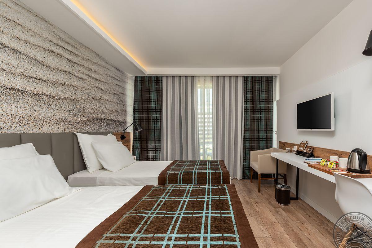 14 dviejų kambarių family rooms tipo numeriai (2 miegamieji atskirti durimis, maks. 6 asm., 56 m2).