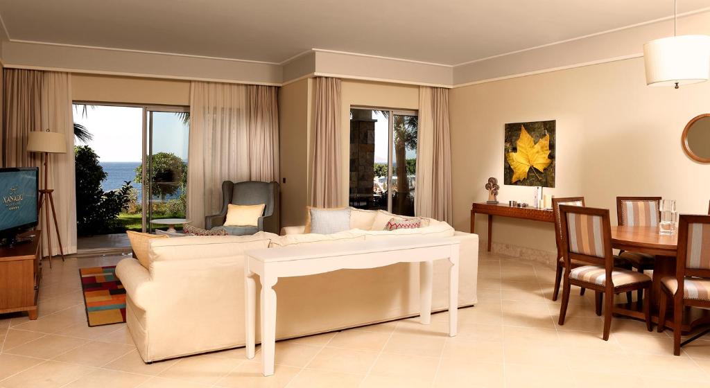 Sunset Suite tipo numeriai (sode, miegamasis atskirtas stumdomomis durimis, svetainė, dvigulė lova, 2 sofos, balkonas, maks. 2+2 arba 3 asm., 70 m2).