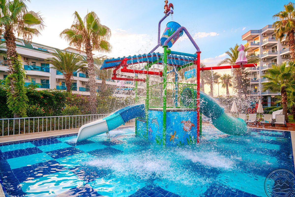 Viešbutis geras. Nežinau kaip kituose 4* viešbučiuose būna, bet šiame šampūno ir balzamo plaukams nebuvo. Kambarys buvo tvarkomas kasdien. Teritorija viešbučio taip pat patiko, iki paplūdimio 5 min kelias. Virtuve nusivyliau, maistas vos šiltas ir net šaltas buvo. Asortimentas maisto vidutiniškas. Kaip gegužės mėnesį iš vaisių tebuvo obuoliai, kriaušės, apelsinai ir greipfrutai. Paklausus apie braškes atsakymas-šiam viešbučiui per brangu jas atsivežti. Iki Konaklio miestelio netoli nueidavau pėstute mėgaudamasi aplinka. Ar grįžčiau antra kartą? Dėl maisto ne, dėl aplinkos taip.