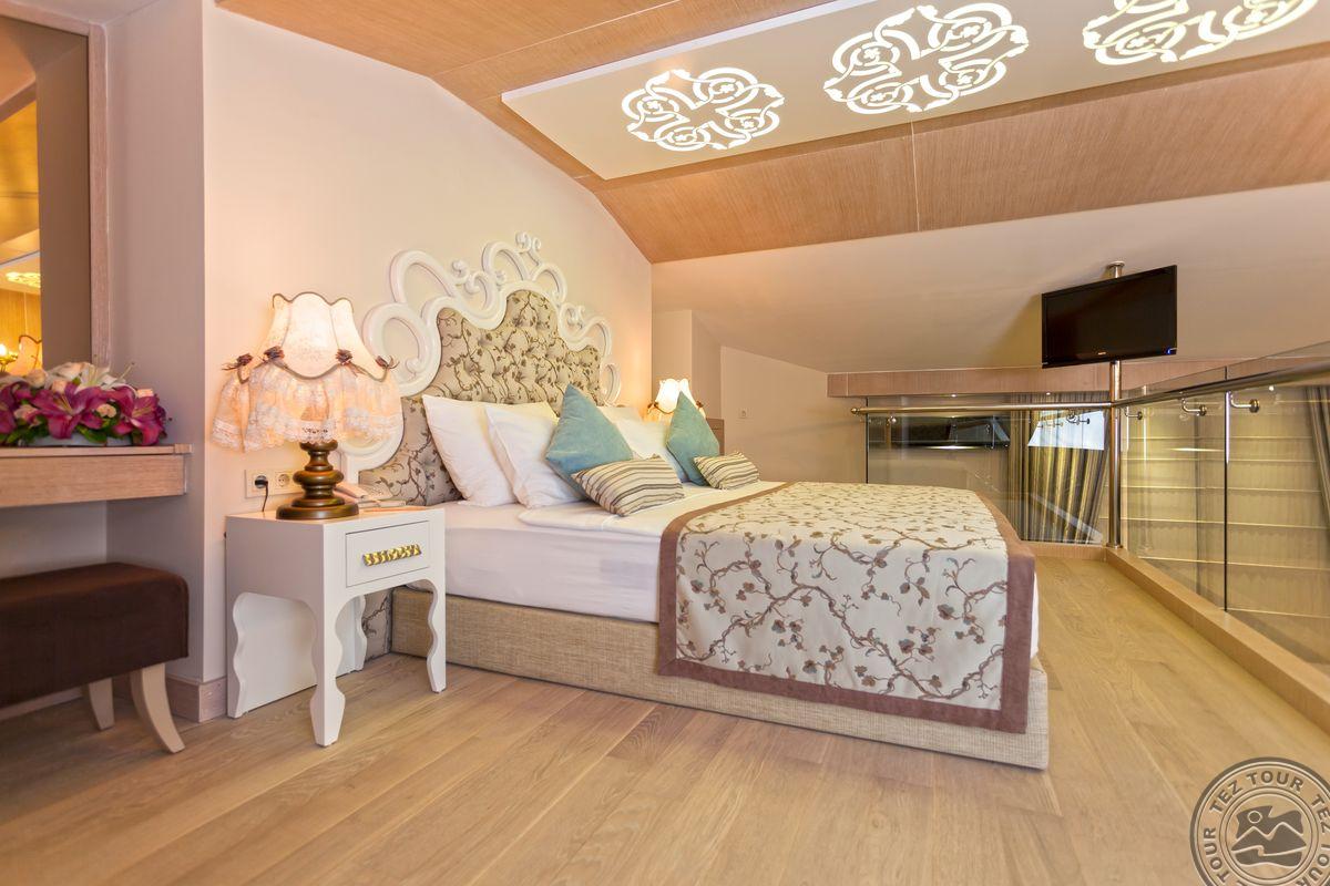 Privačiame Cleopatra paplūdimio ruože įsikūręs viešbutis „Xperia Saray Beach“, skirtas ramaus poilsio ieškantiems keliautojams. Viešbutis skirtas tik suaugusiems. Svečiai galės mėgautis turkiška pirtimi, sūkurine vonia, lauko baseinu ir masažo kabinetais. Numeriuose rasite balkonus, oro kondicionierius, televizorius, nemokamų gaiviųjų gėrimų pripildytus mini barus bei galėsite naudotis nemokamu belaidžiu internetu. Rekomenduojamas poroms ir draugų grupėms.