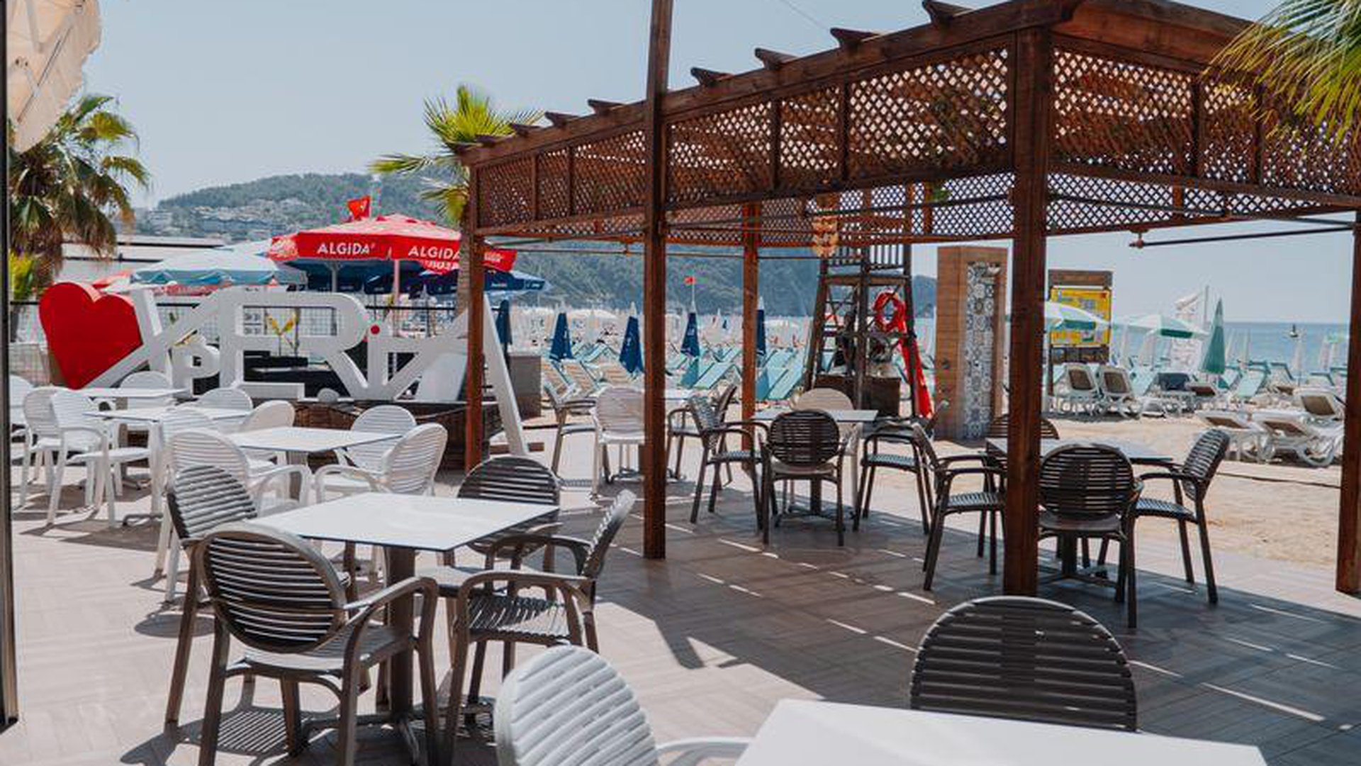 • paplūdimyje: skėčiai, gultai nemokamai