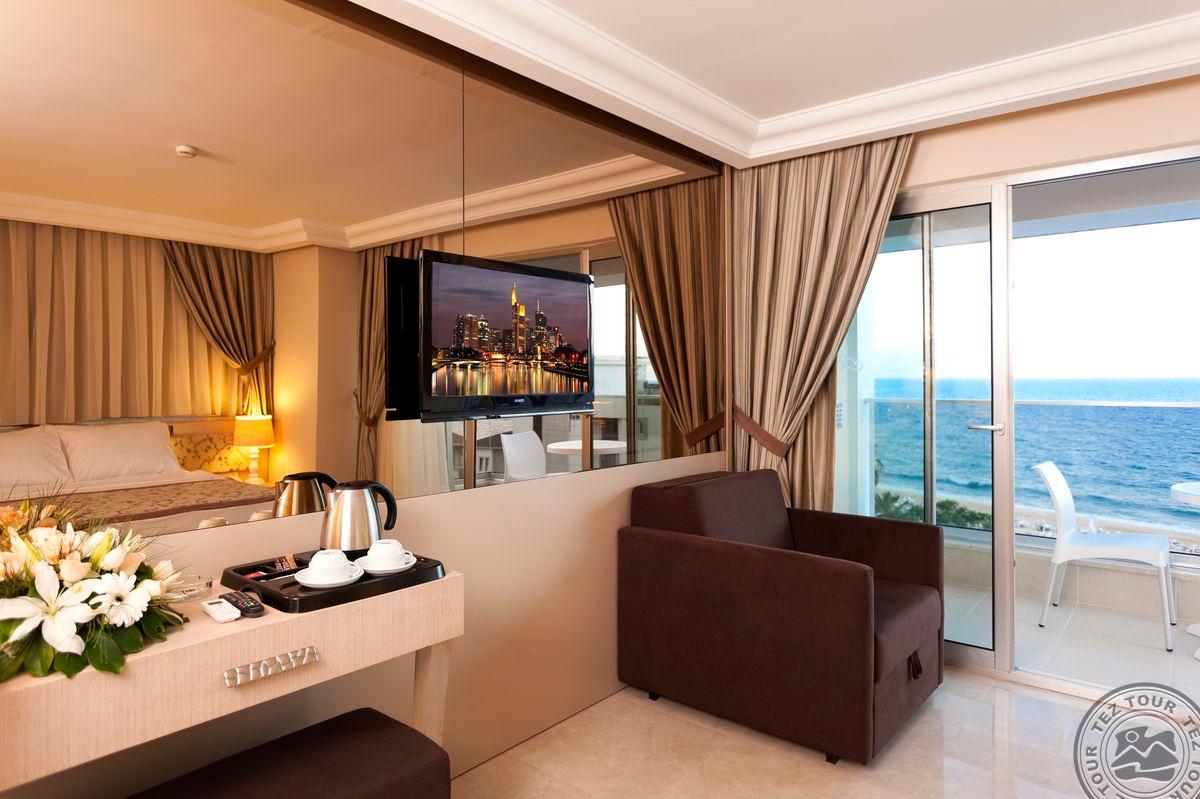 Registratūra šviesi, paprasta. Terasa nedidelė. Miesto viešbutis ant jūros kranto, teritorija kompaktiška, maža. Nedidelis baseinas. Standard no balcony pirmame aukšte, netoli registratūros. Kambariai gražūs, tvarkingi, maksimaliai 3 asmenys, trečia lova normali. Koridoriai šviesūs. Standard with balcony kambaryje tik dvigulė lova. Deluxe kambarys toks pat kaip standartas tik erdvesnis. Mini baras kasdien pildomas vaisvandeniais. Suite kambarys iš dviejų kambarių, viename ištiesiama sofa, kitame dvigulė (vonios kambarys ten kur dvigulė lova), erdvus. Paplūdimys smėlio/žvyro, greit gilėja. Nedidelis viešbutis, kam reikia miesto ir jūros.
