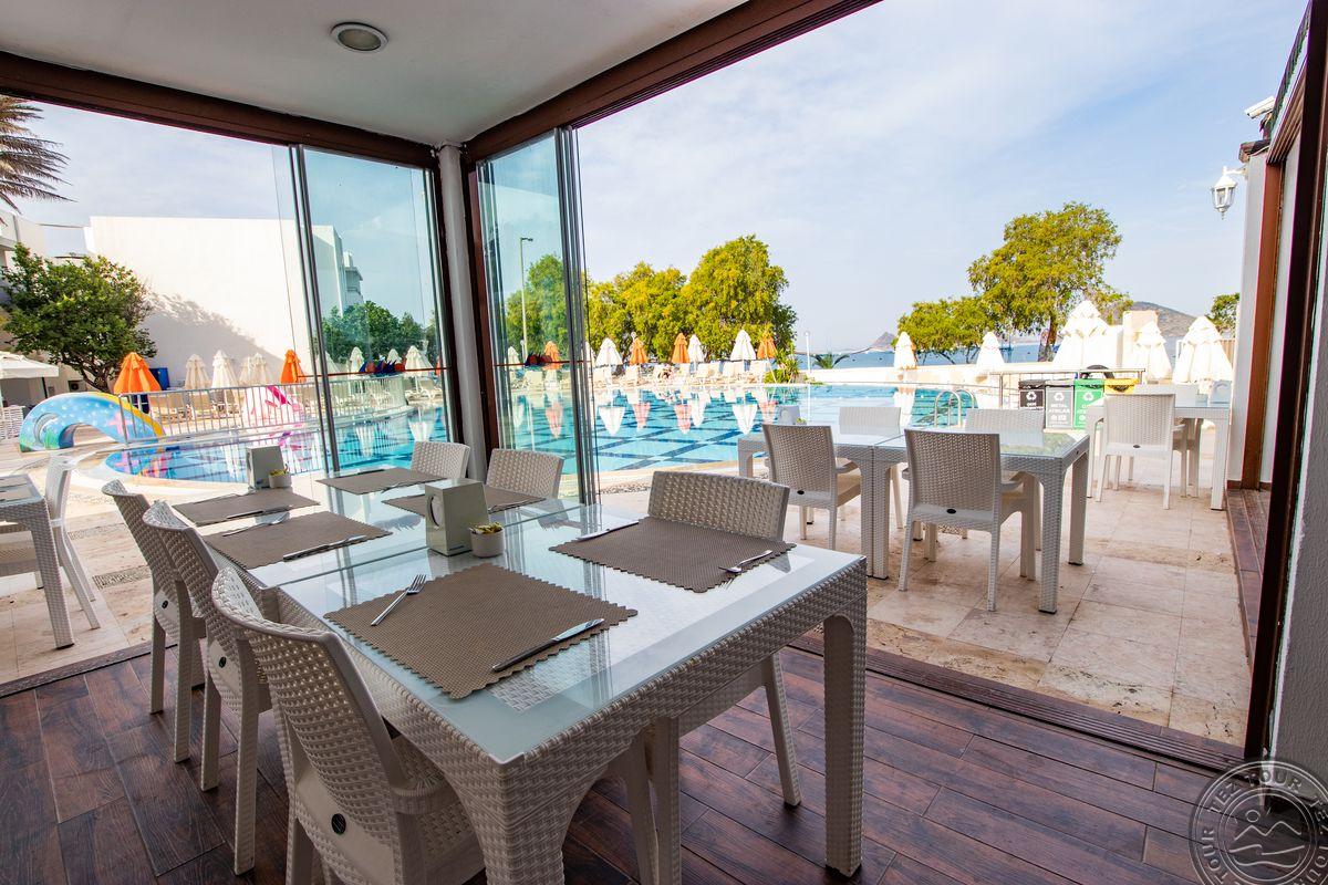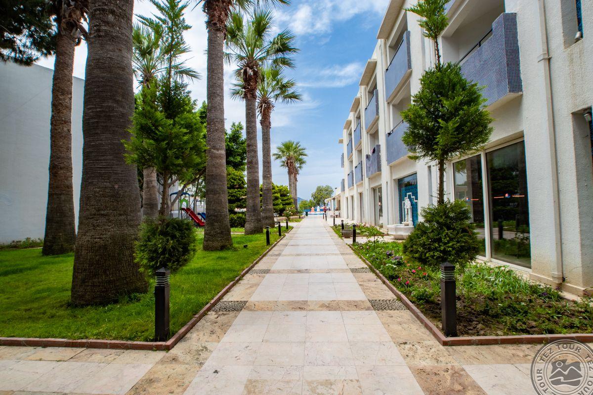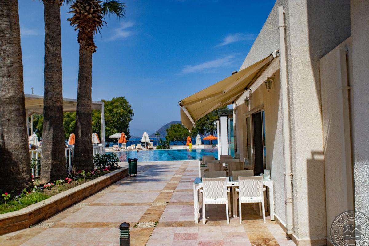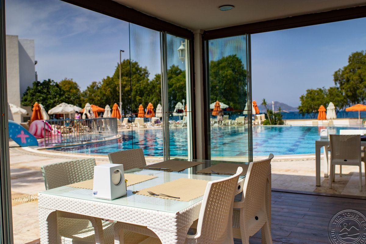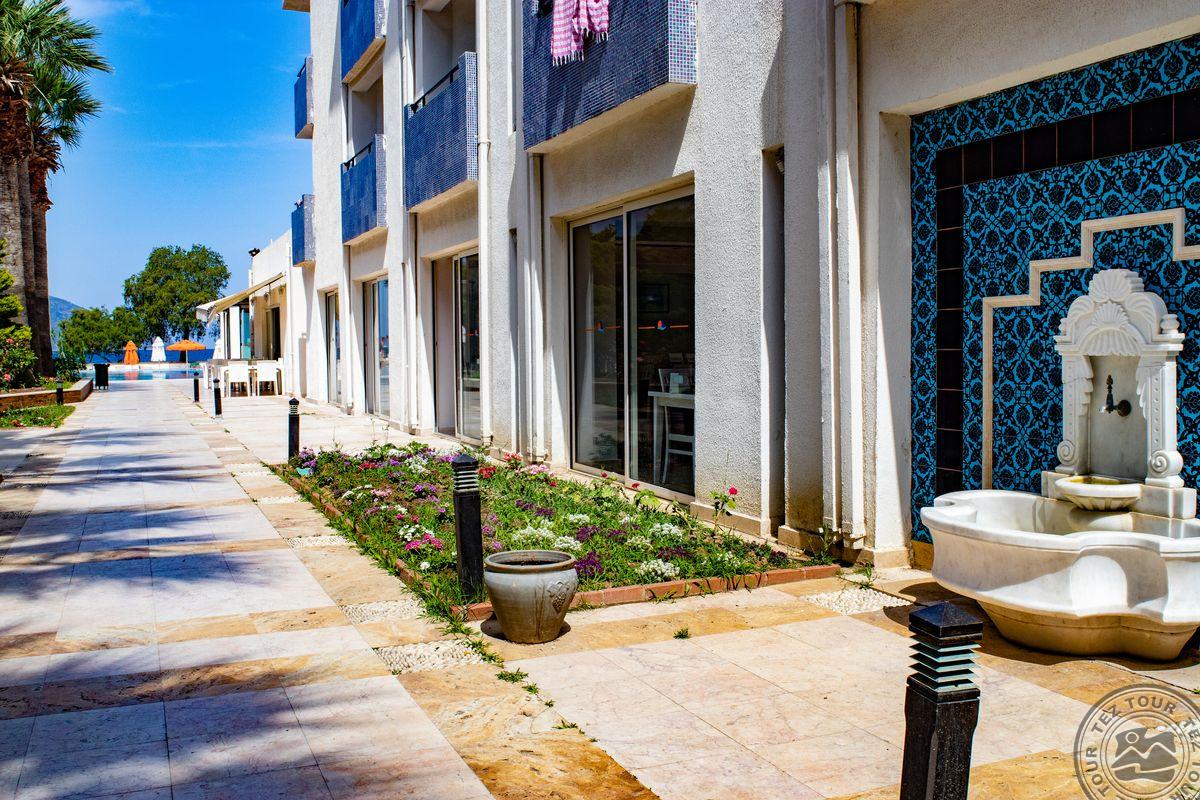 Turgutreiso gyvenvietėje, apie 53 km iki Bodrumo oro uosto, apie 18 km iki Bodrumo, ant jūros kranto.