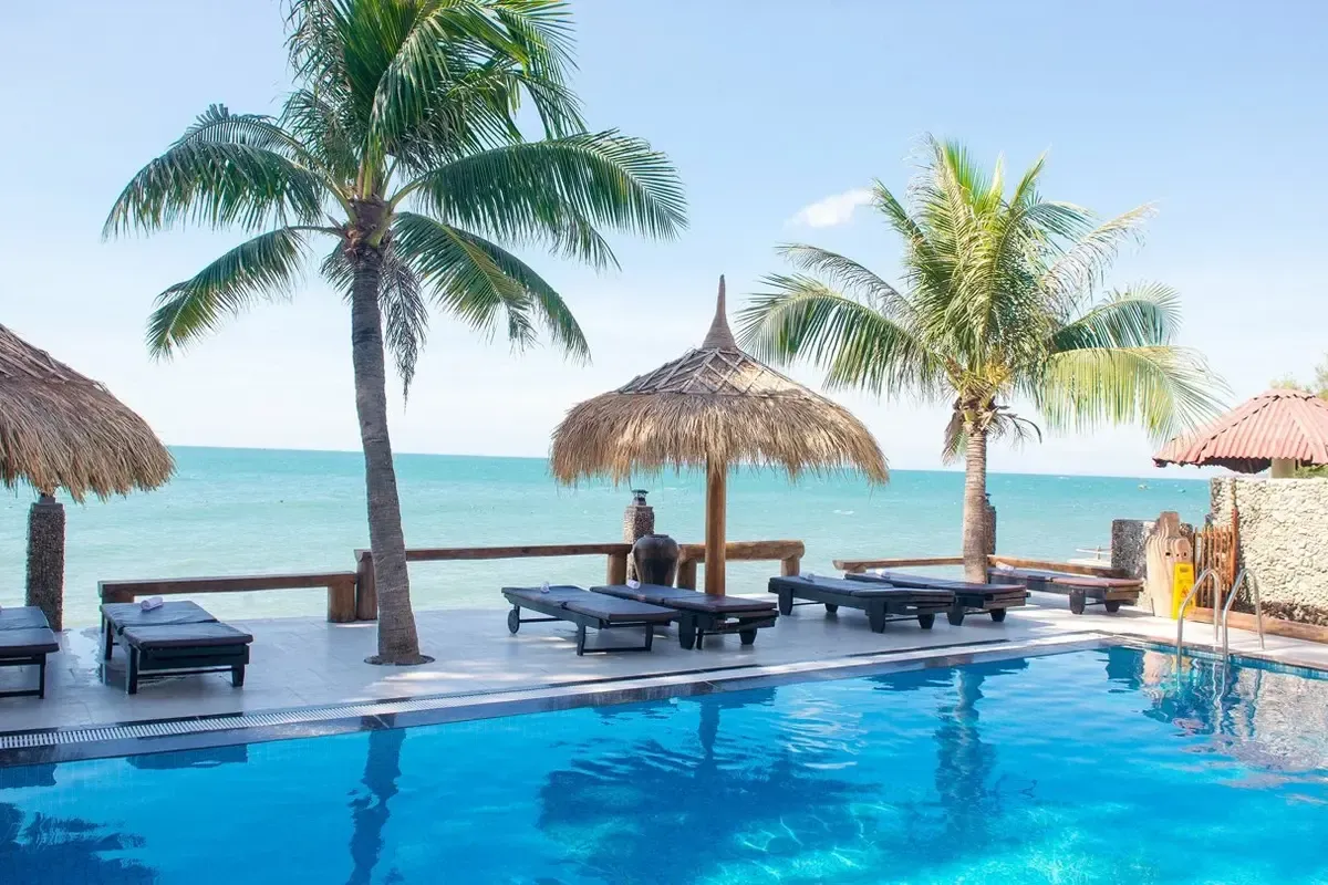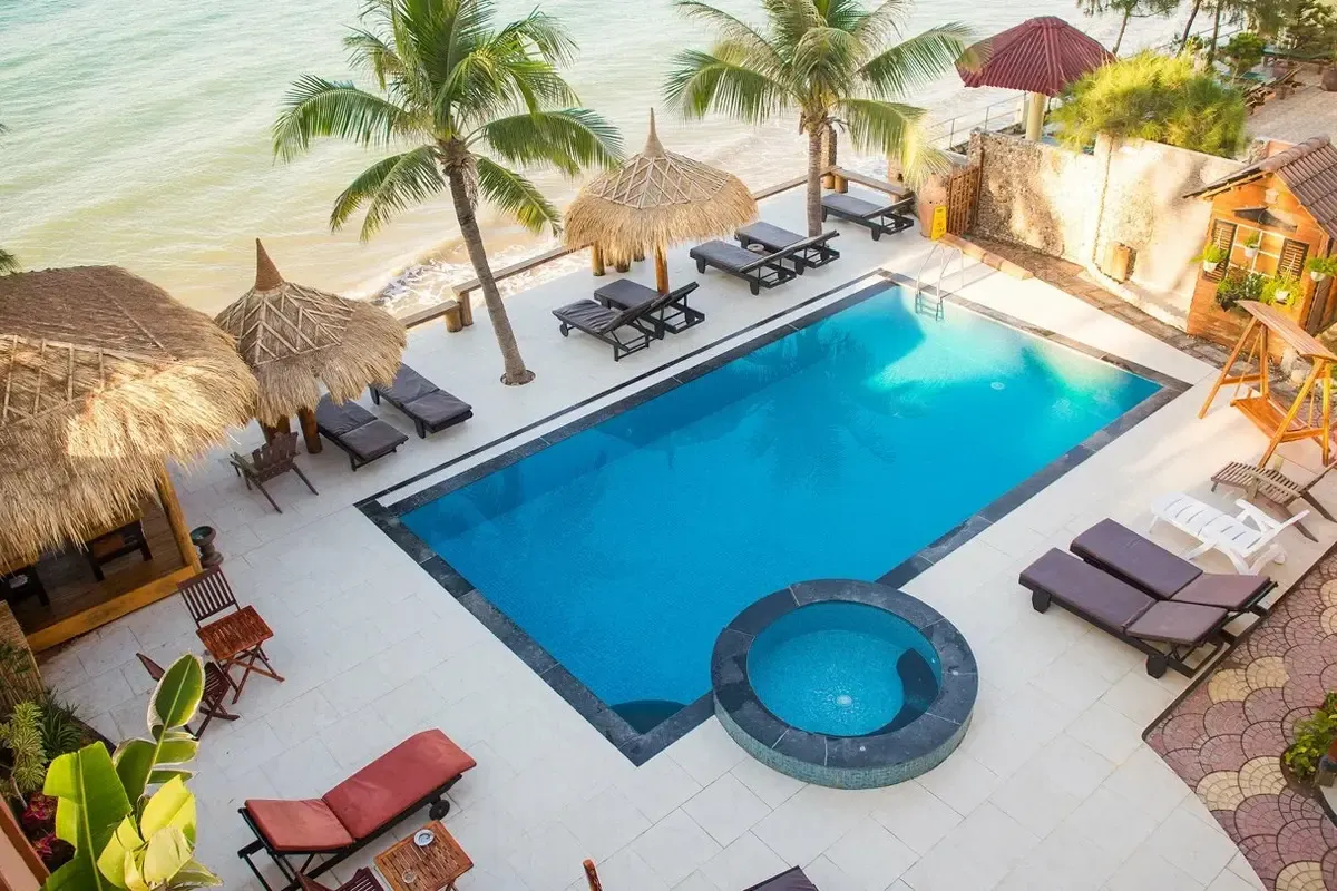 Ant jūros kranto, 2 km iki Ham Tieno kurorto centro, 189 km iki oro uosto.